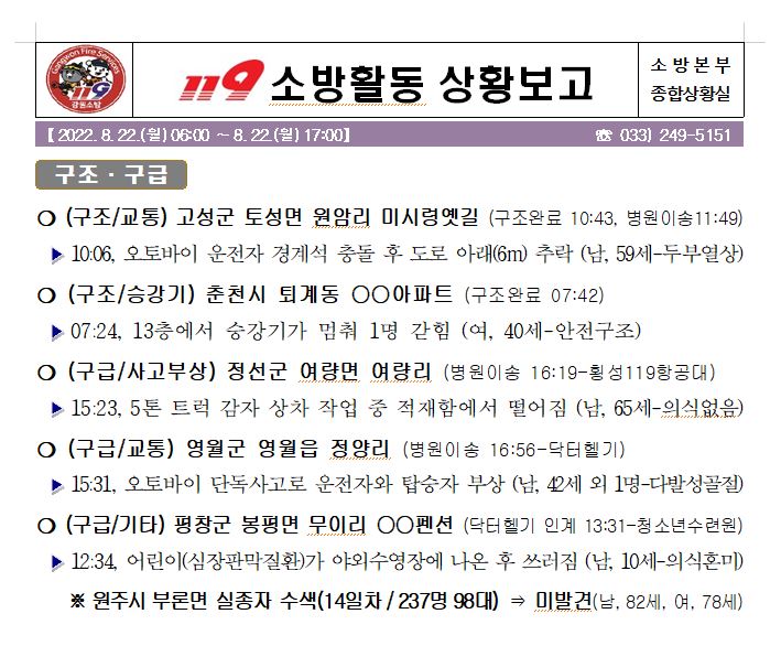 119 소방활동 상황보고(8. 22. 월) 17:00