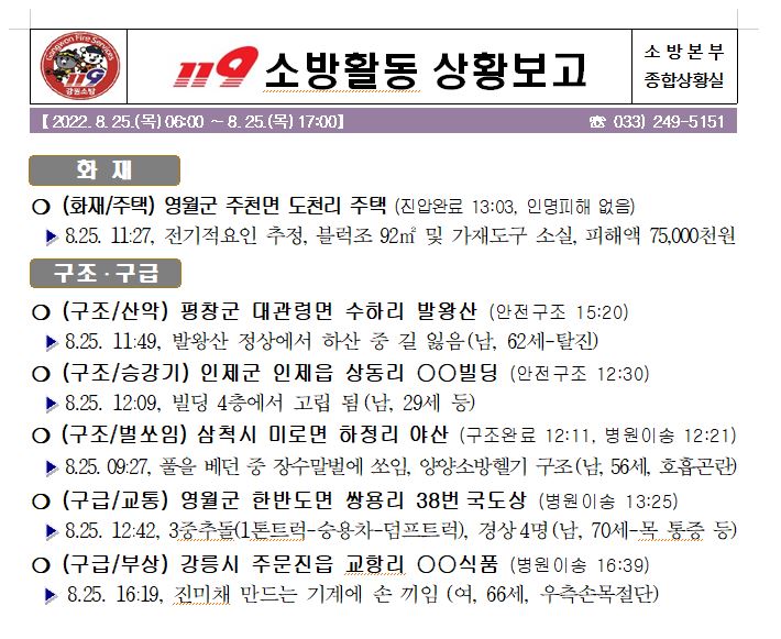 119 소방활동 상황보고(8. 25. 목) 17:00