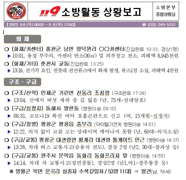 119 소방활동 상황보고(9. 8. 목) 17:00