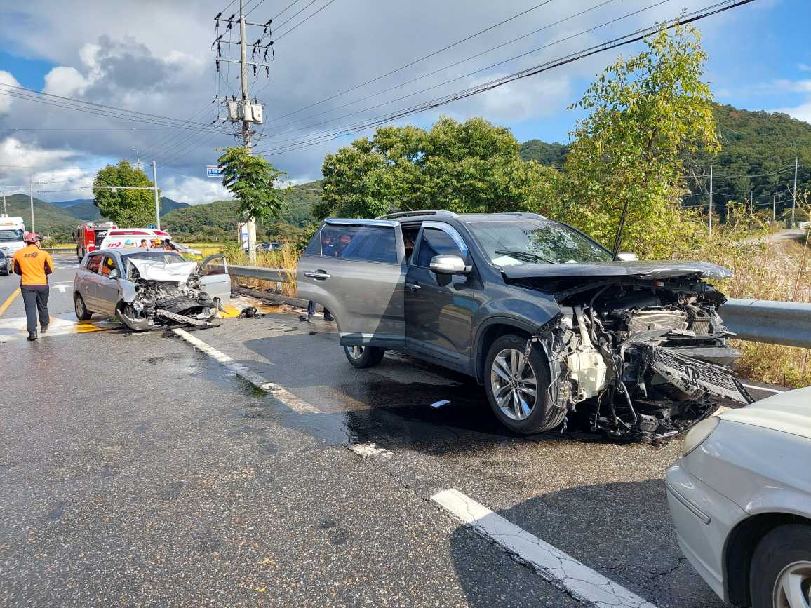 14:26, 승용차(모닝) vs SUV(쏘렌토) 충돌, 심정지(여, 50대-모닝운전자), 중·경상2(남, 27세- 복부통증 등)