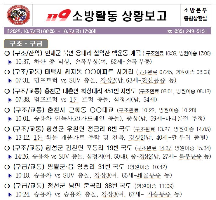 119 소방활동 상황보고(10. 7. 금) 17:00