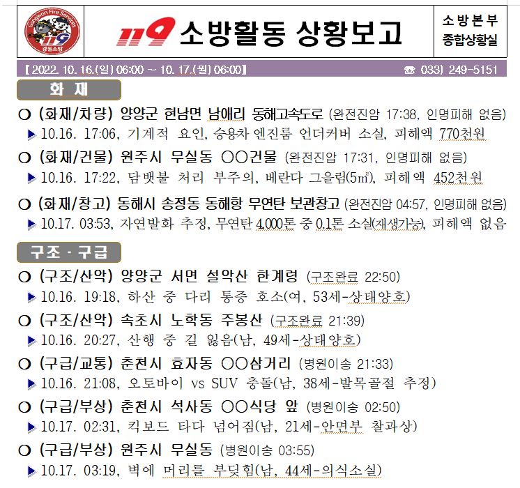 119 소방활동 상황보고(10. 16. 일) 17:00