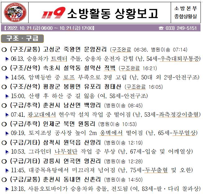 119 소방활동 상황보고(10. 21. 금) 17:00