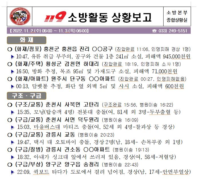 119 소방활동 상황보고(11. 3. 목) 06:00