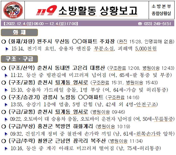 119 소방활동 상황보고(12. 4. 일) 17:00