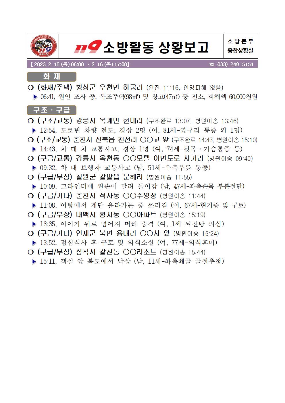 119 소방활동 상황보고(2. 17. 금) 06:00