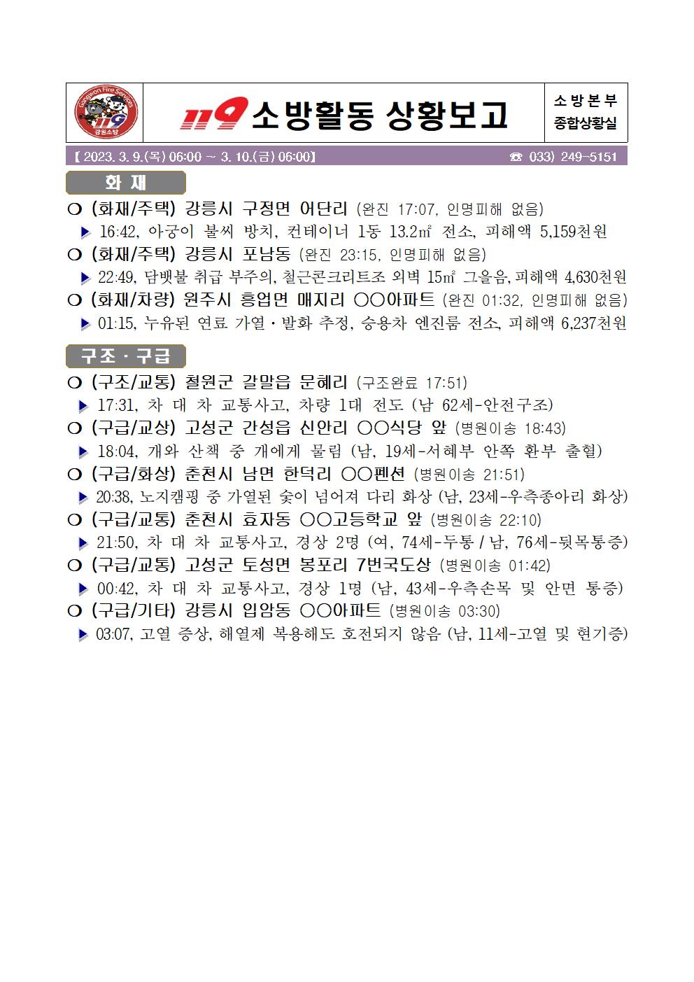 119 소방활동 상황보고(3. 10. 금) 06:00