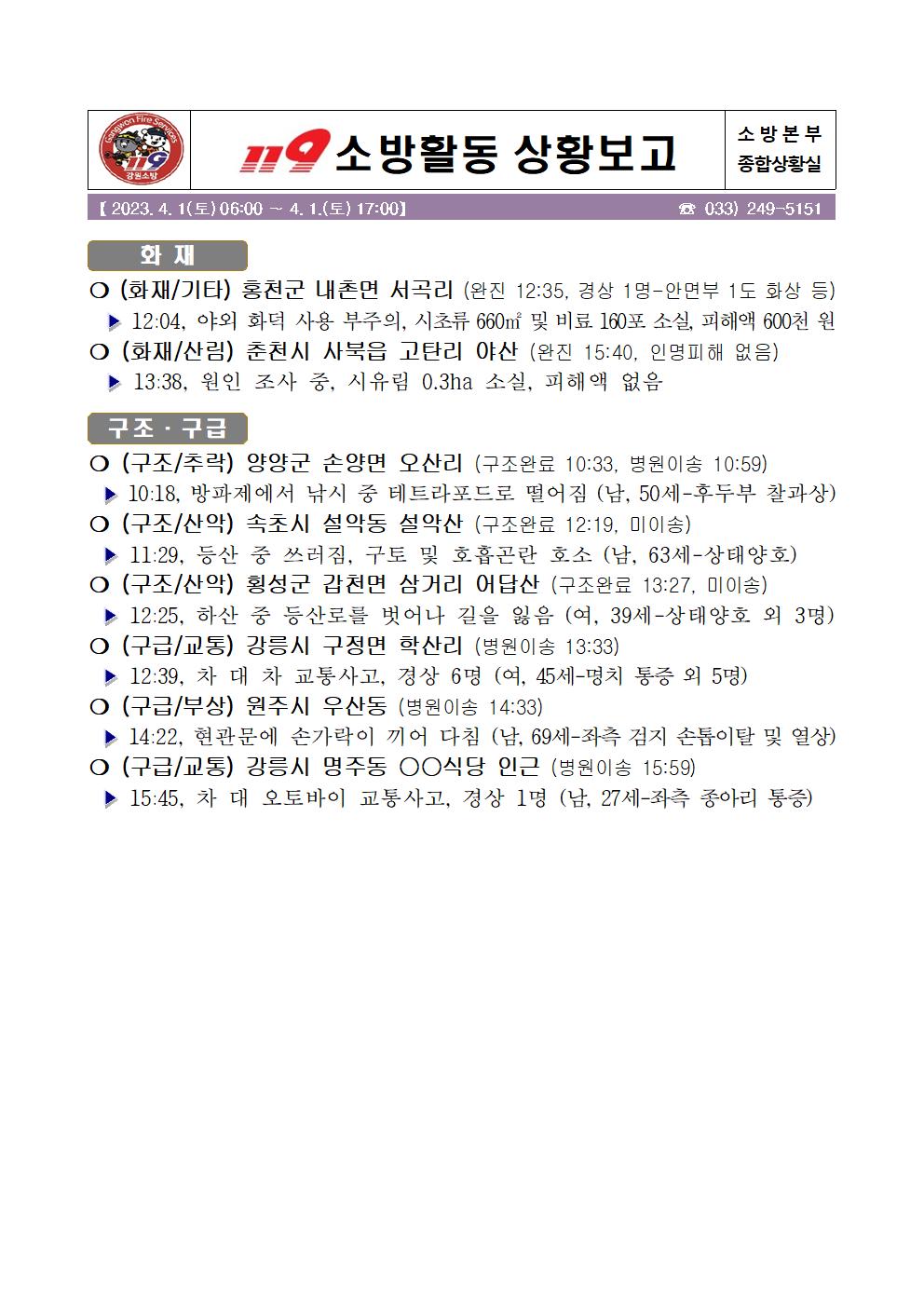 119 소방활동 상황보고(4. 1. 토) 17:00