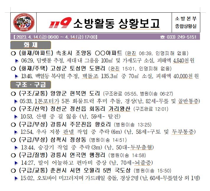 119 소방활동 상황보고(4. 14. 금) 17:00