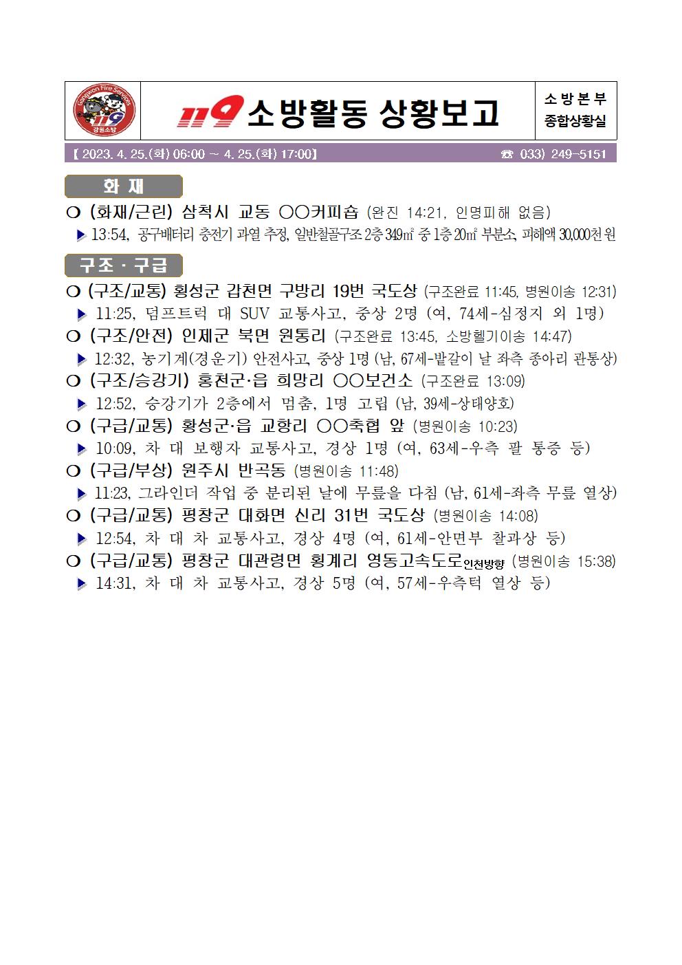 119 소방활동 상황보고(4. 25. 화) 17:00