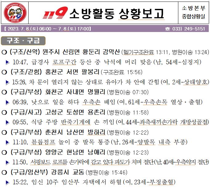 119 소방활동 일일상황보고(7. 8.토) 17:00
