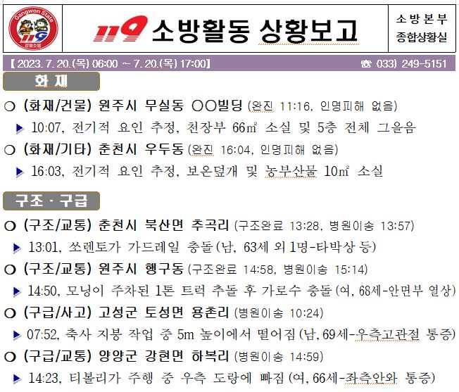 119 소방활동 상황보고(7. 20. 목) 17:00