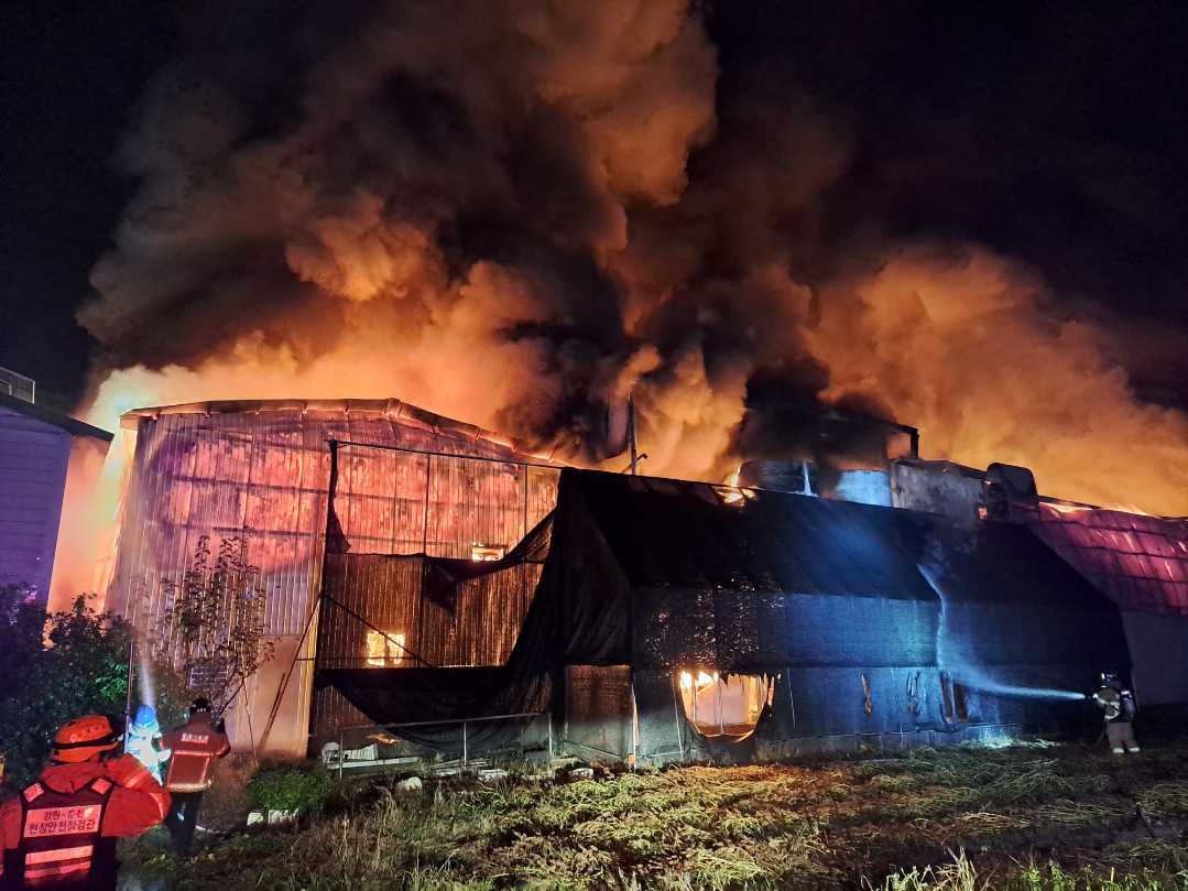 춘천 신북읍 00농장 양계장 화재 현장 사진