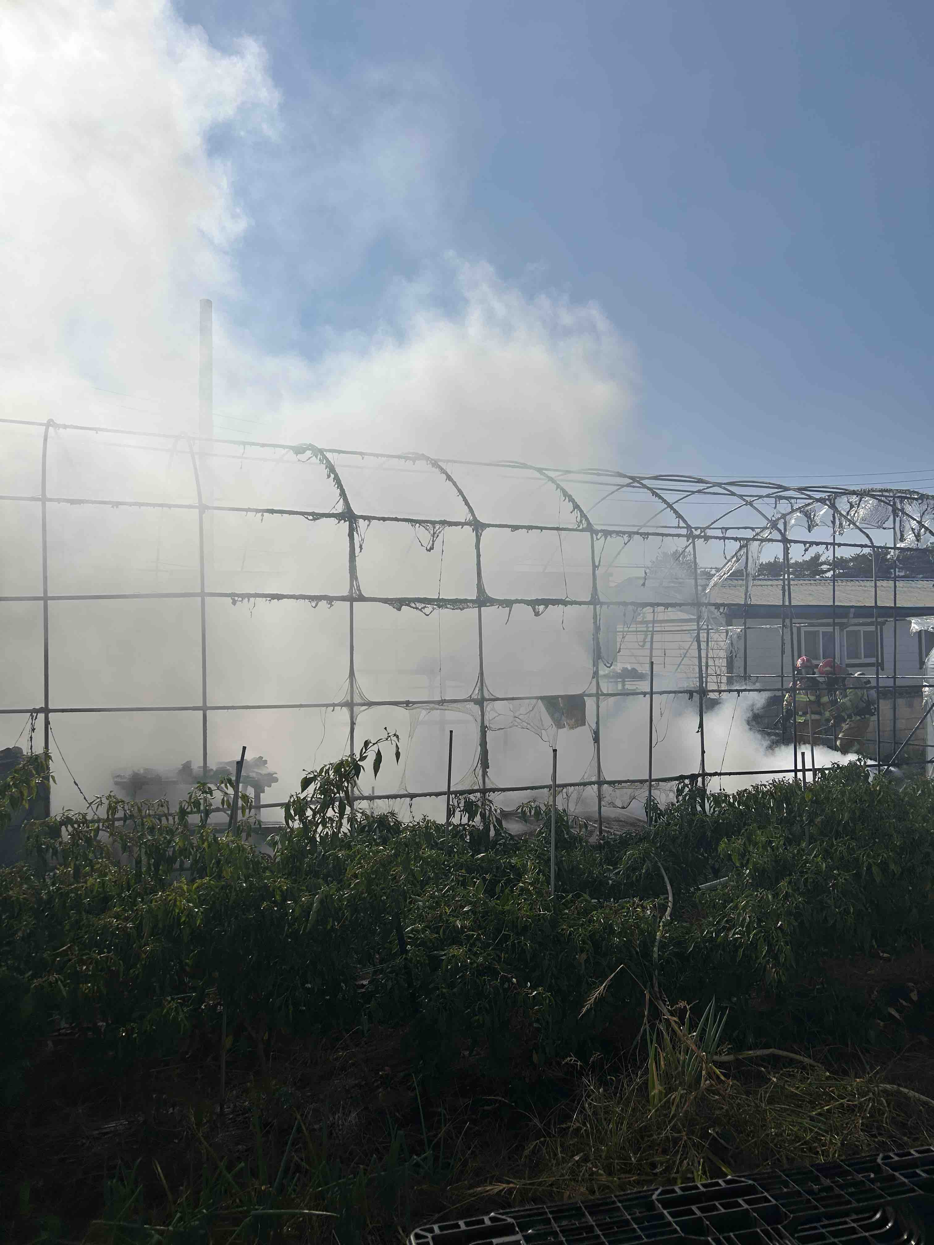철원 김화읍 도창초등학교 인근 비닐하우스 화재 사진