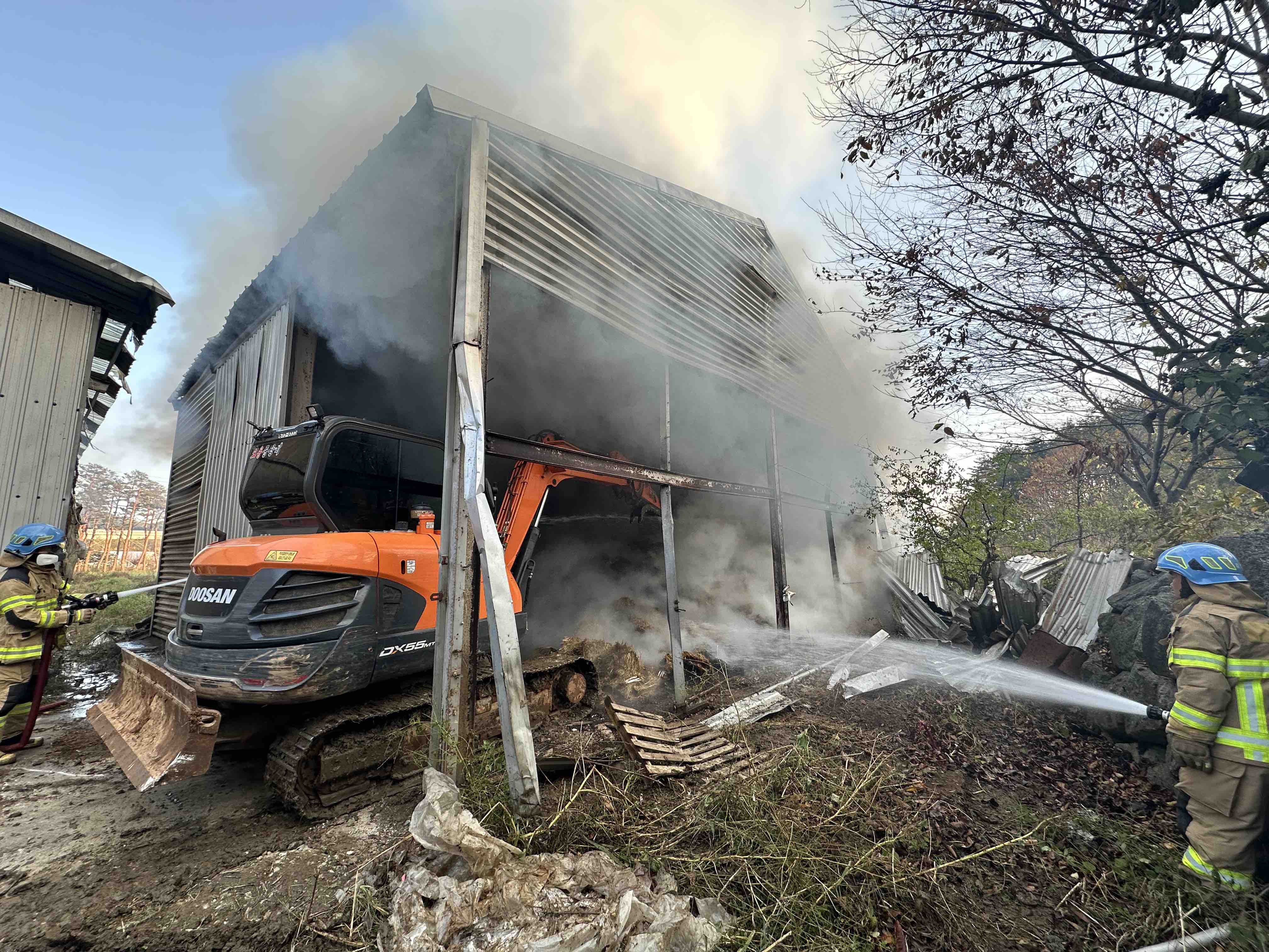 양양 강현면 건초 보관 창고 화재 관련사진