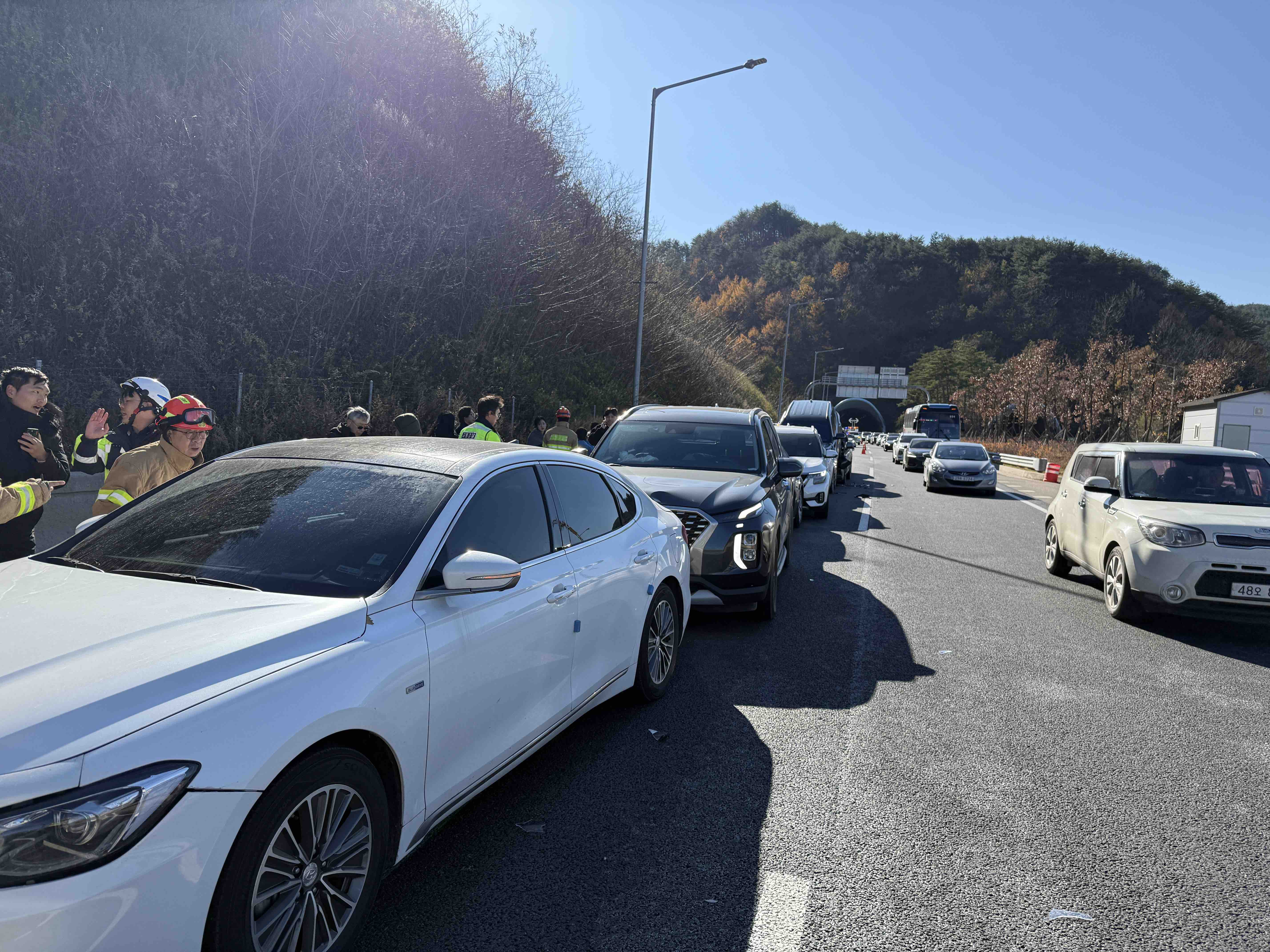 양양고속도로 양양 분기점 인근 8중 추돌사고 관련 사진 2점