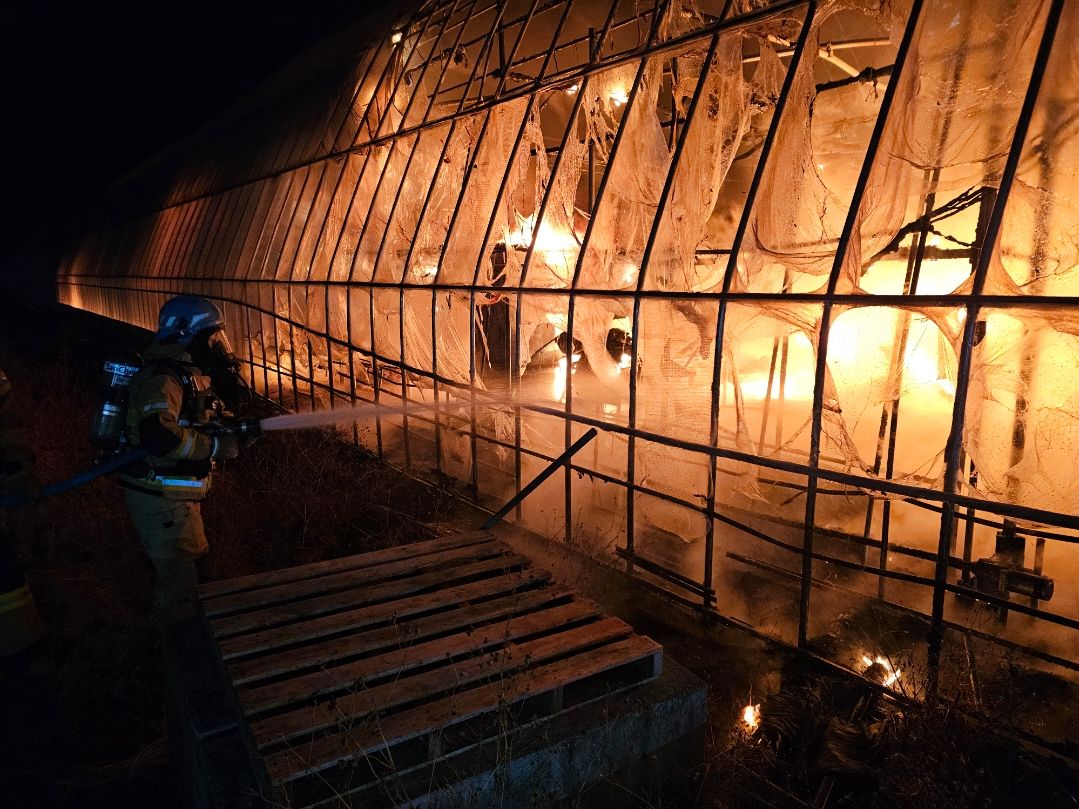 2. 22:18분 철원 동송읍 DMZ 두루미 평화타운 인근 토마토 비닐하우스 화재 인명피해 없음, 하우스 6동 전소(1,500평)- 피해액 조사중