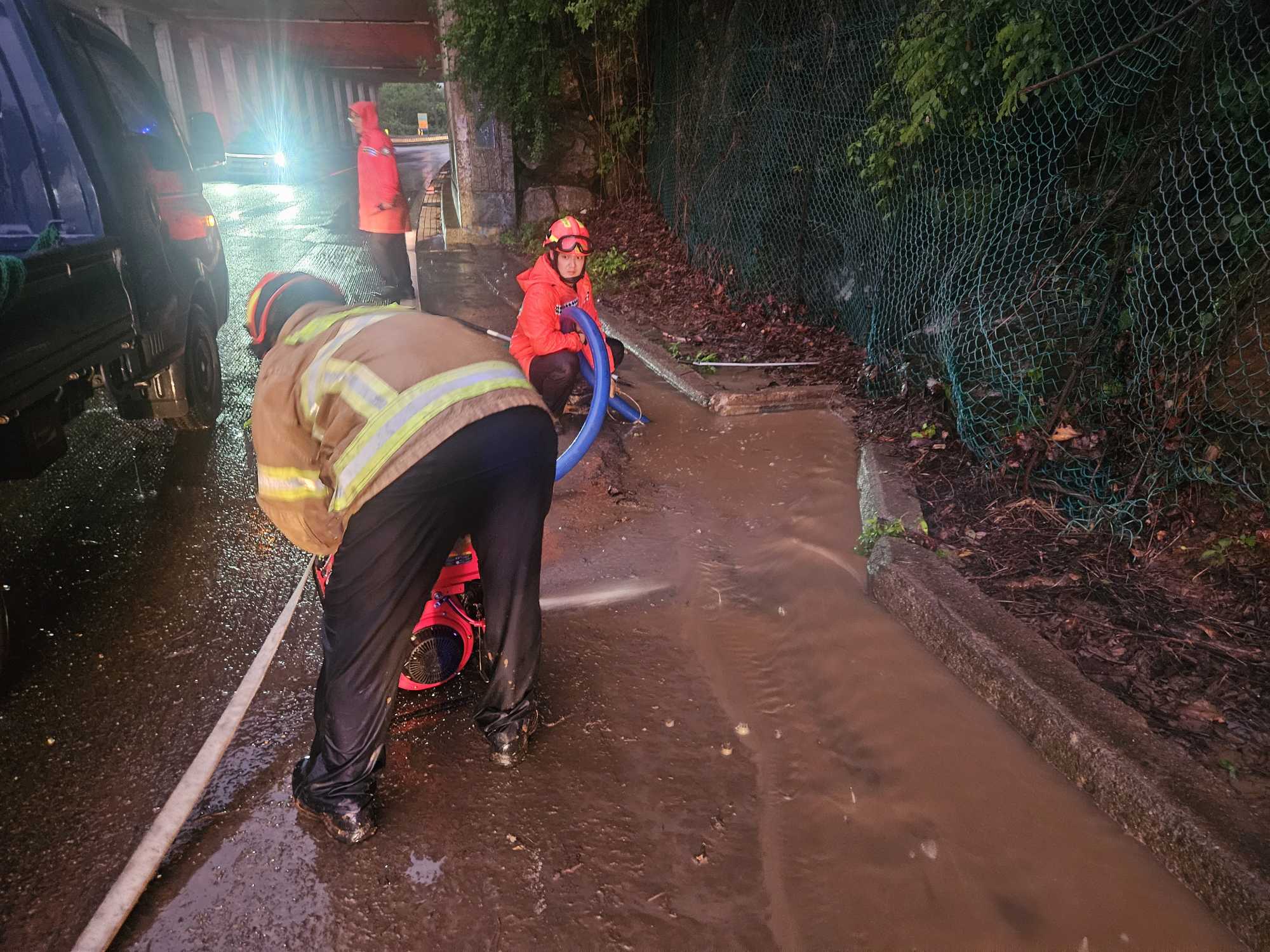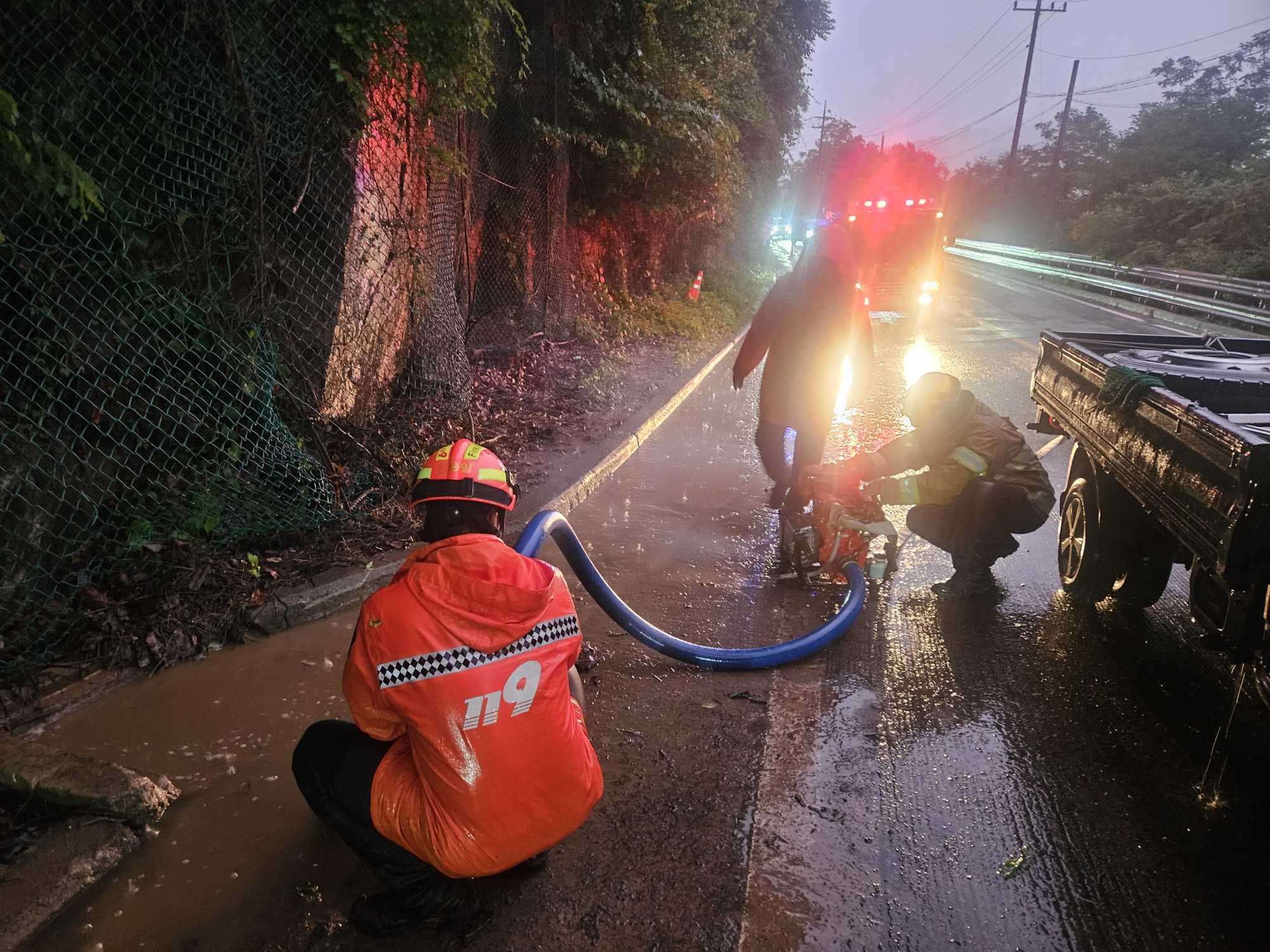 춘천시 서면 오월리 피암터널 앞 도로침수 현장 활동사진