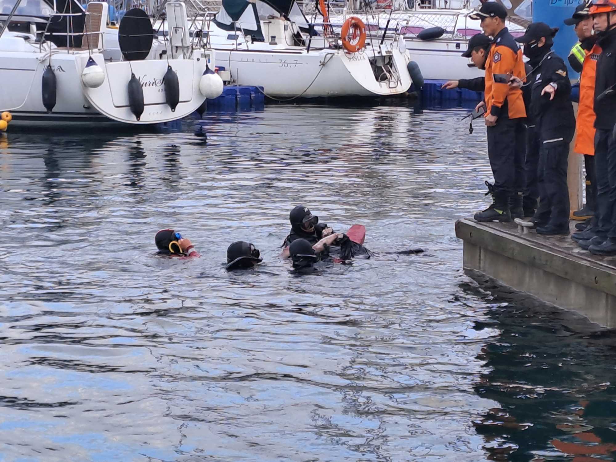1632 강릉 강릉항 물속 승용차 운전자 인양 소방활동 사진.jpg