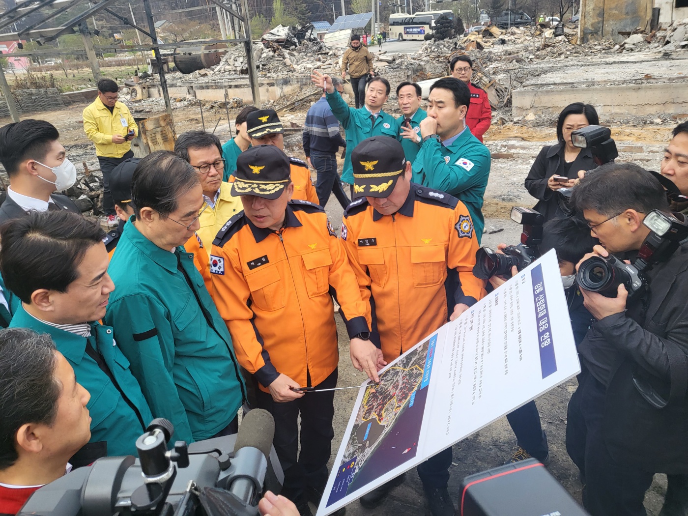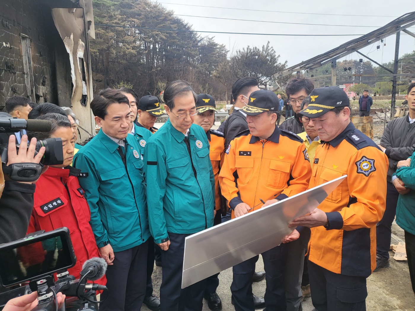 이일 본부장, 한덕수 국무총리 강릉화재 현장 방문 상황설명