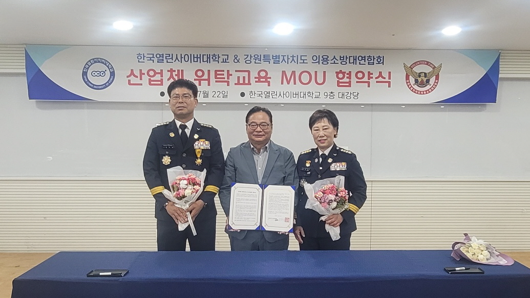 강원특별자치도 소방본부(본부장 김승룡)는 22일 서울 중랑구에 위치한 한국열린사이버대학교에서 강원특별자치도 의용소방대연합회 및 한국열린사이버대학교와 교육협력 협약을 체결했다고 밝혔다.