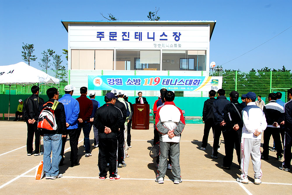 본부의 담당님과 각 소방서의 관계자 여러분들이 협력하여 주신 덕분에 40여명의 선수와 많은 직원 여러분들이 참여하여 지난 20일 강릉시 주문진읍 소재 청송테니스코트에서 무사히 잘 치루었읍니다.
