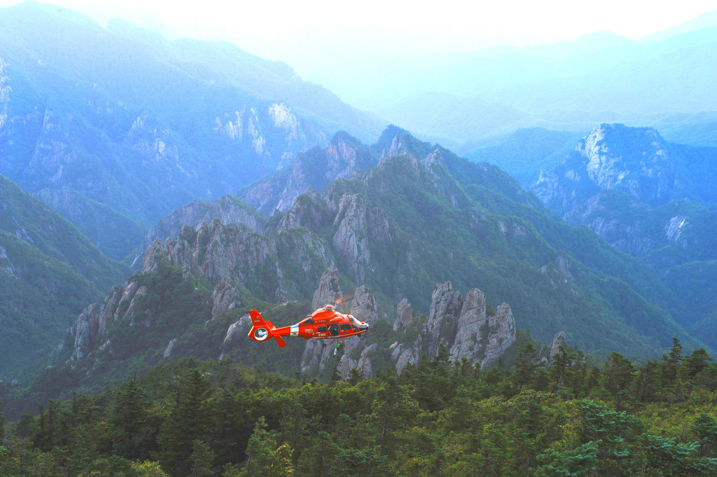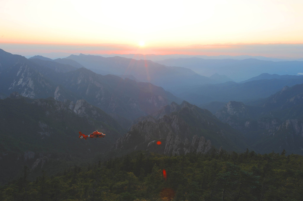 강원소방 항공구대님들의 구조모습 사진이 마침 용아장성 일몰 촬영준비중인