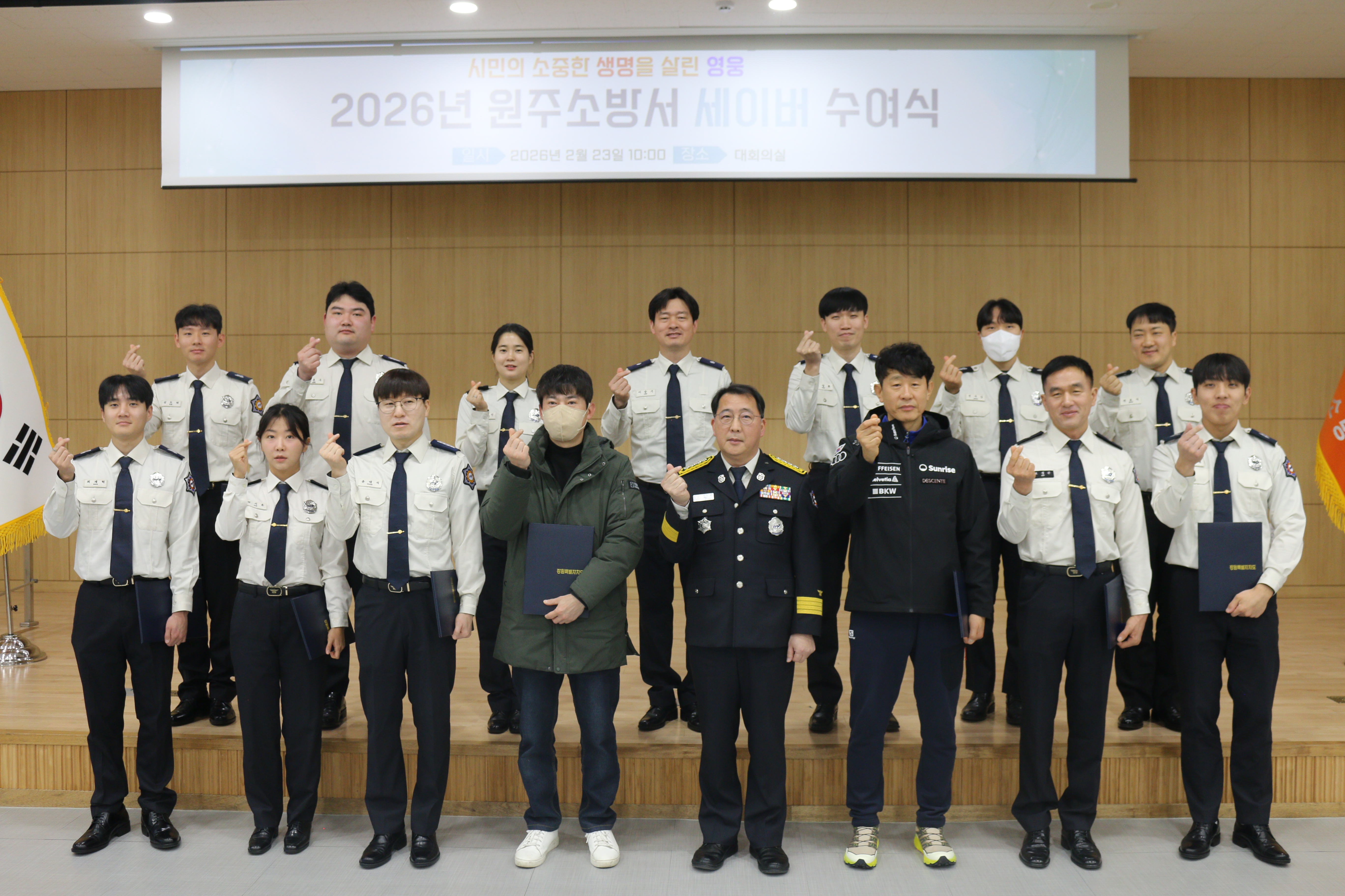 ◯ 원주소방서(서장 김정기)는 23일 오전 10시 소방서 대회의실에서 심정지, 급성 뇌졸중 환자를 신속하게 응급처치해 생명을 살린 소방공무원 및 민간인 유공자에게 하트‧브레인 세이버 증서와 배지를 수여했다.