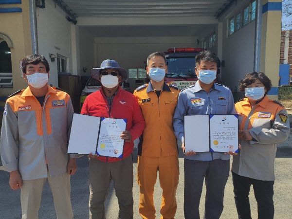 지난 3.16일 오후 동면 덕곡리 소재 한 농가 주택에서 발생한 화재사고에서 동면남성의용소방대 김영록(남,49세) 대원과 민간인 장동왕(남,47세)씨는 주택 내부 창문 인근에 있던 피해자를 발견해 건물 밖으로 구조한 바 있다.