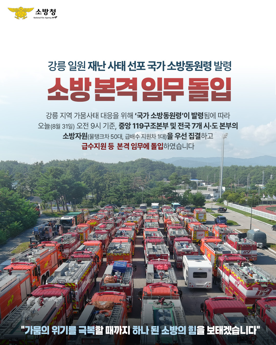 | 26850 | 강릉시 가뭄 대응 소방 급수지원 본격화 | 정선홍보 | 2025-09-10 | 219 | |