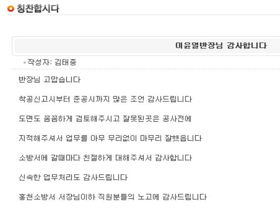 홍천소방서 민원인 칭찬글입니다