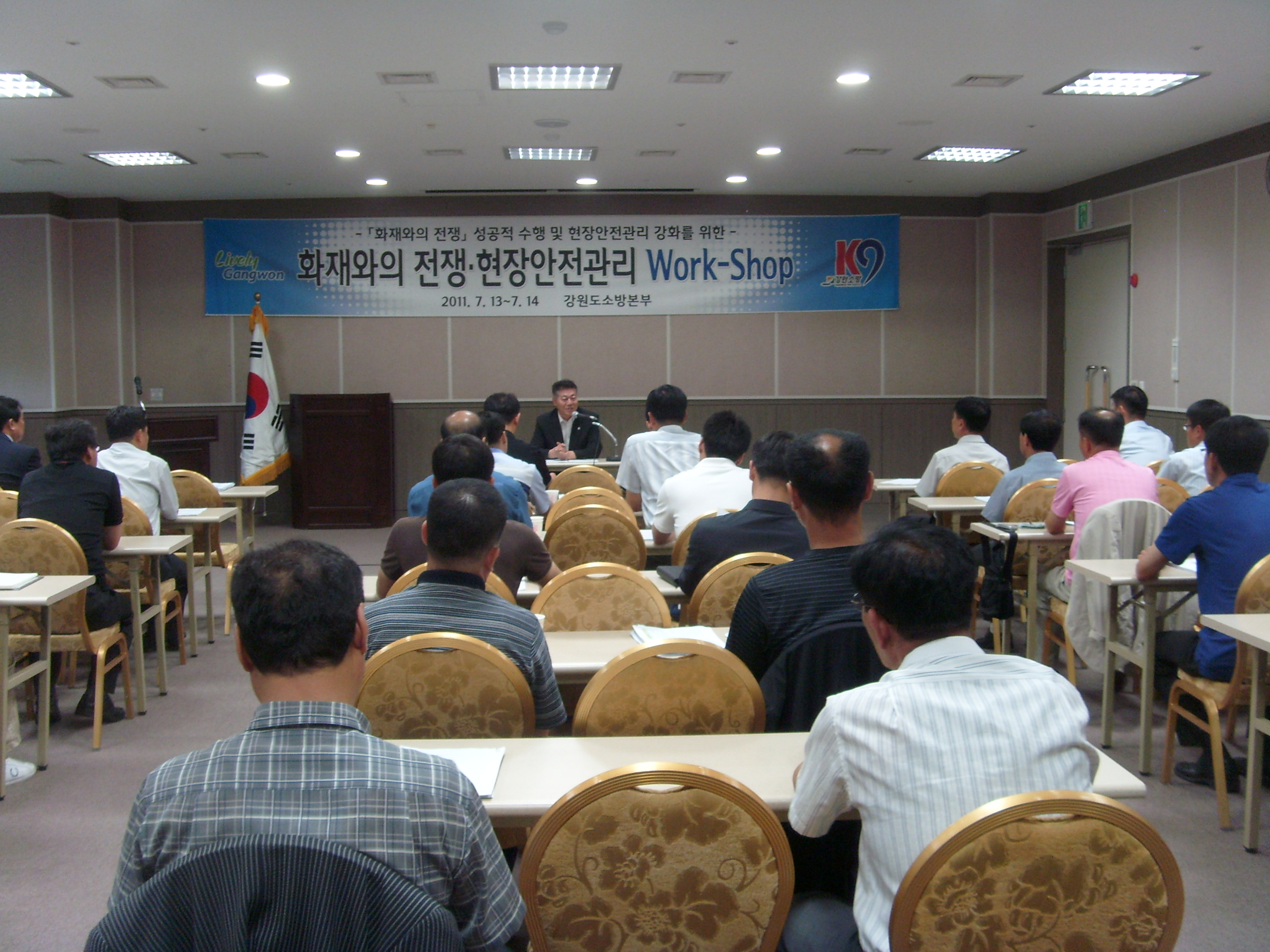 강원도 소방본부【본부장 오대희(吳大熙】는 2011년 7월13일(수)부터 7월 14일 (1박 2일)동안 양양군 강현면 정암리소재 코레일 낙산연수원에서 12개 소방서별 『화재와의 전쟁』수행 주무부서 및 안전관리 담당자 등 45명이 참석 『화재와의 전쟁?현장 안전관리』Work-shop을 개최하였다.