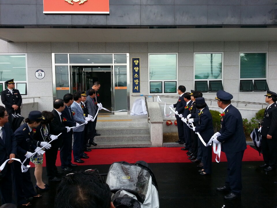 강원도소방본부(본부장 이흥교)는 24일 오전 11시 양양소방서 신축청사에서 배진환 행정부지사, 함종국 도의회 기획행정위원장을 비롯한 도의회의원 등 내빈이 참석한 가운데 양양소방서 개서식이 열렸다.
