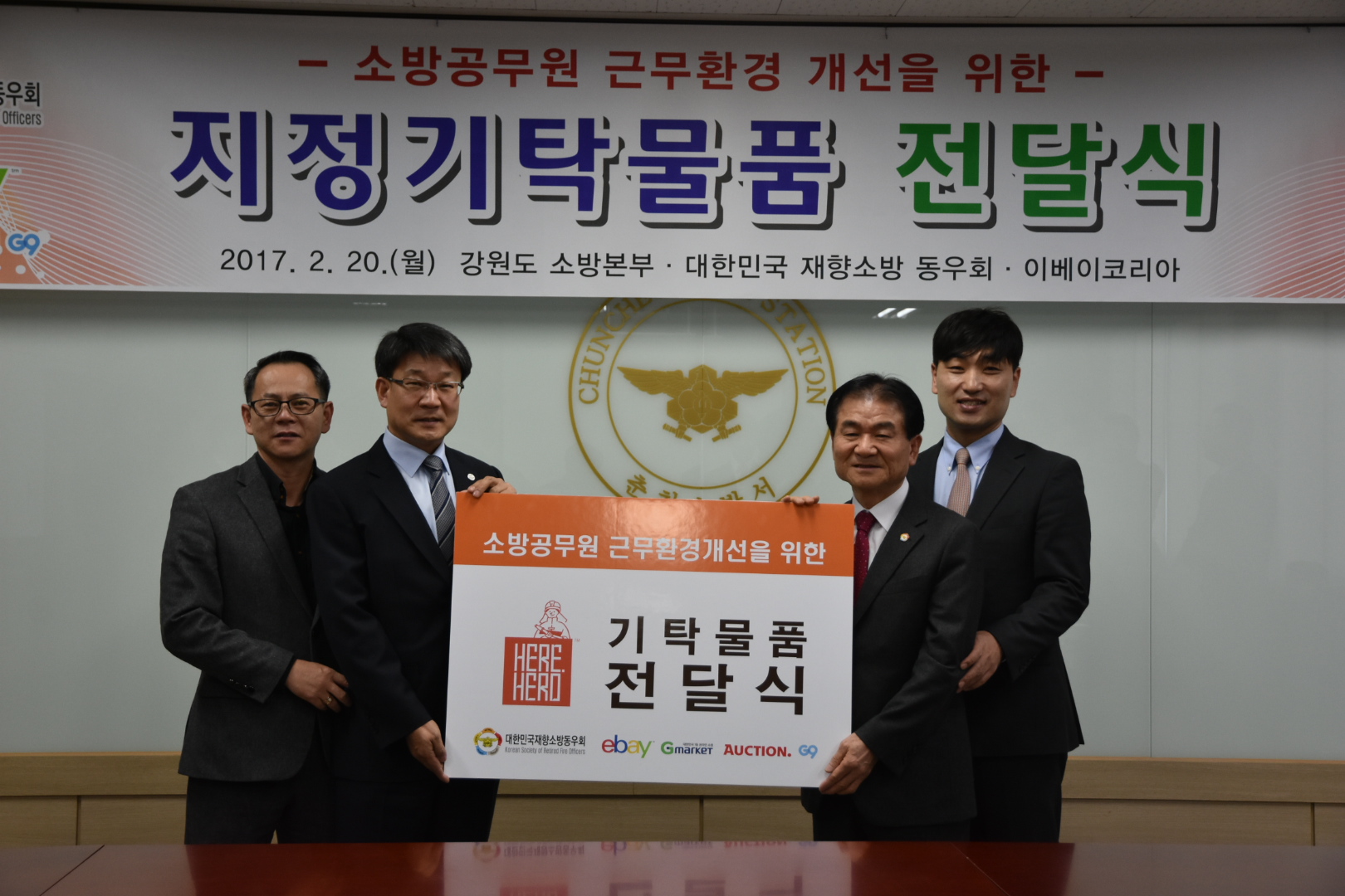 강원도소방본부(본부장 이흥교)는 20일 오전 11시 춘천소방서에서 ‘대한민국재향 소방동우회’와 ‘이베이코리아’로부터 소방공무원 근무환경 개선을 위한 기부물품을 전달받았다.