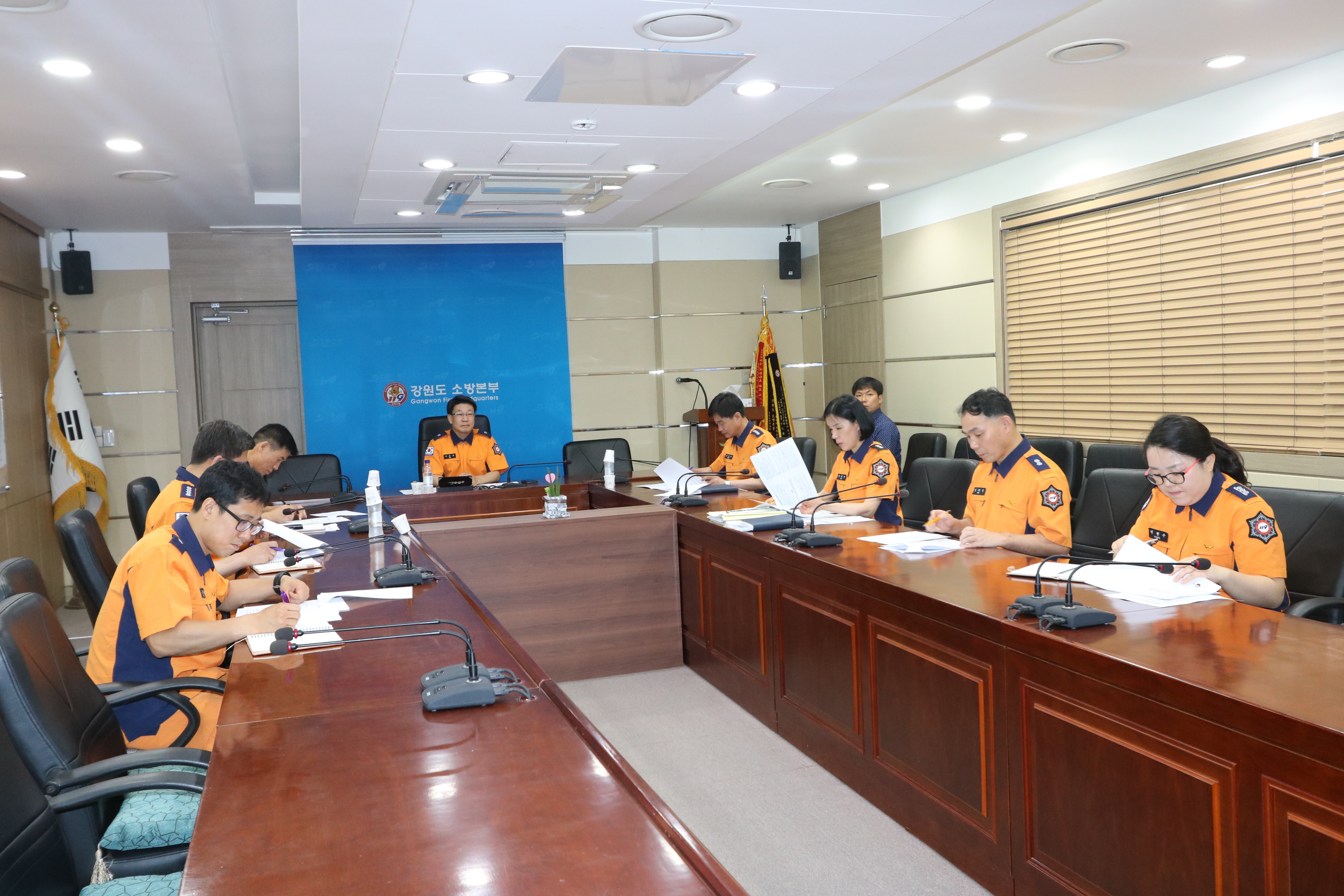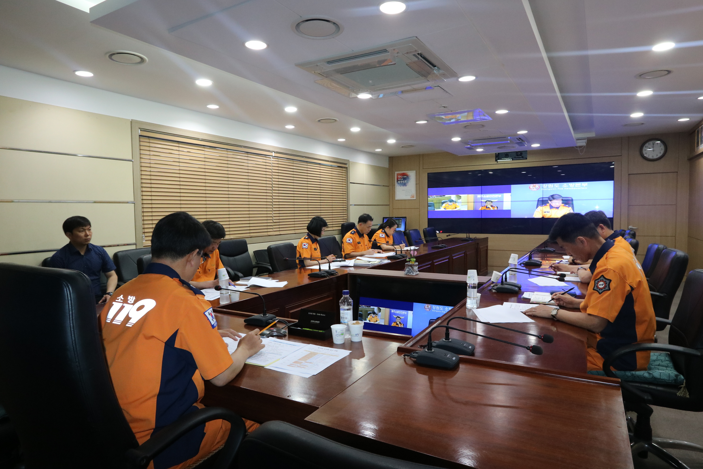 강원도소방본부(본부장 이흥교)는 14일 오전 10시 도청 신관 3층 전략상황실에서 오는 7월부터 시행되는 화재안전특별조사와 관련 전국 시,도 소방본부장 영상회의를 가졌다.