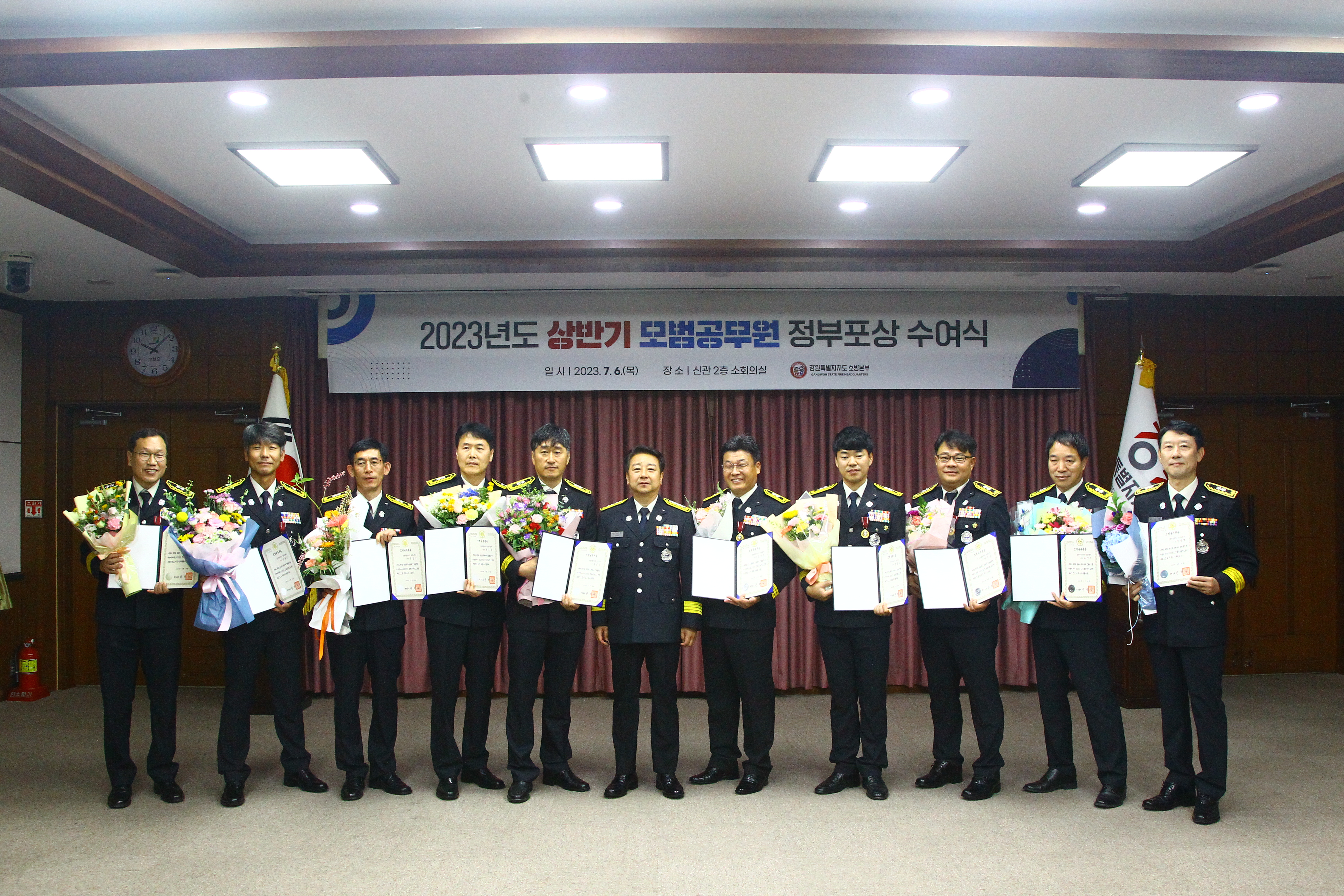 ○ 강원특별자치도소방본부는 6일 10시에 도청 신관 소회의실에서 2023년도 상반기 모범공무원에 대한 시상식을 개최했다.