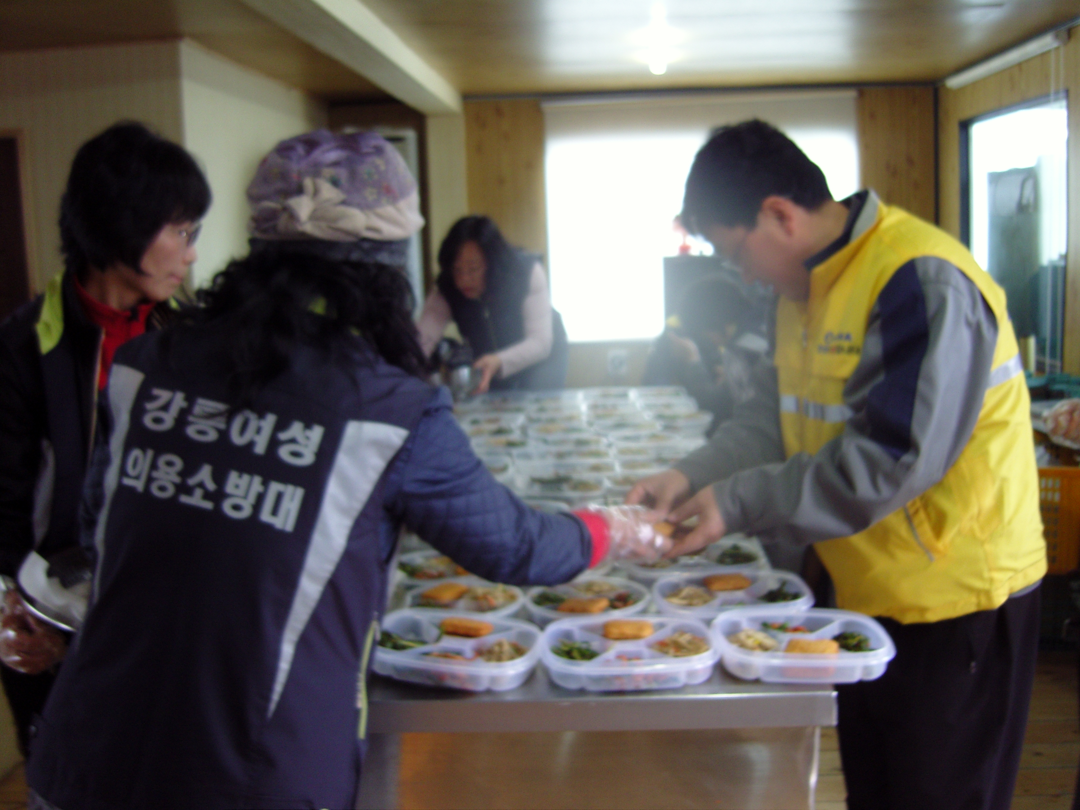 심술궂은 빗방울 소릴들어면서 열심히 도시락준비히시는 여성의용소방대 울~회원님들~