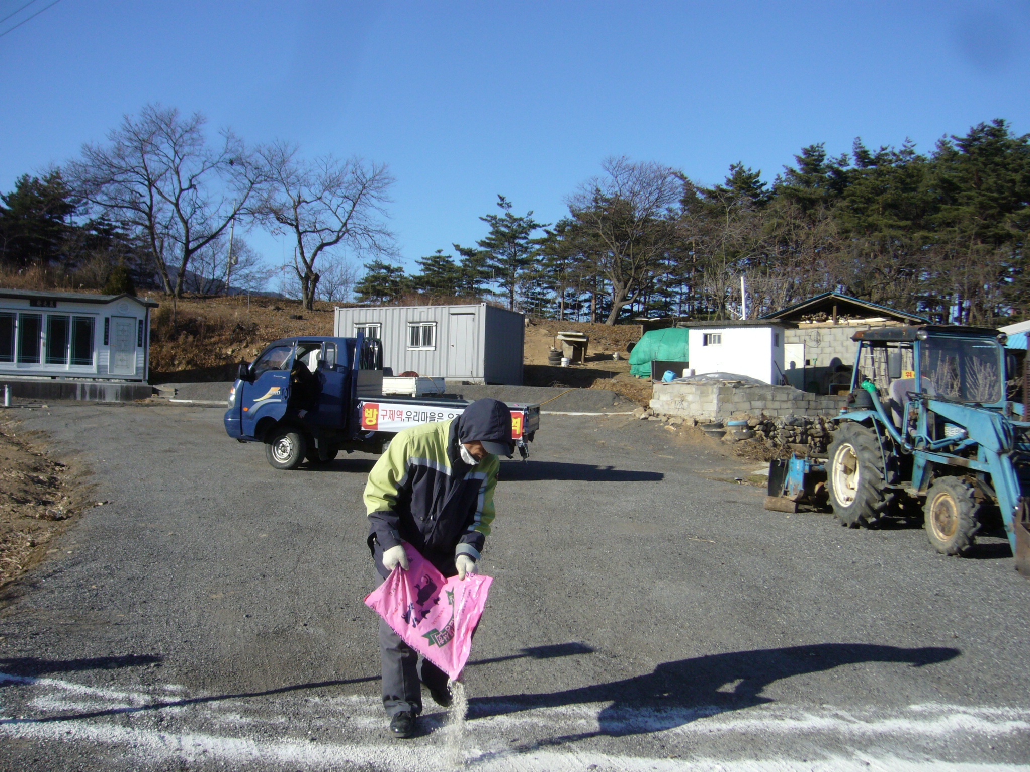 구정 남,여 의소대는 2010년 12월 27일~2011년 1월 1일 6일간 면내 구제역 집중 방제 일을 정하여 구역별 1일 2회 방역을 12개리 115농가에 방역차량, 방역소독기로 분무약품과 생석회로 지역별 농가진입로, 주요 도로 모두 소득 실시 하였습니다. 또한 29일에는 배영준 내곡센타장 님께서 직접 같이 동참, 소득을 실시하였습니다. 오후에는 강릉소방서 박병호 서장님께서 구정의소 사무실에 방문하시고 위문품도 보내 주셨습니다. 감사합니다.