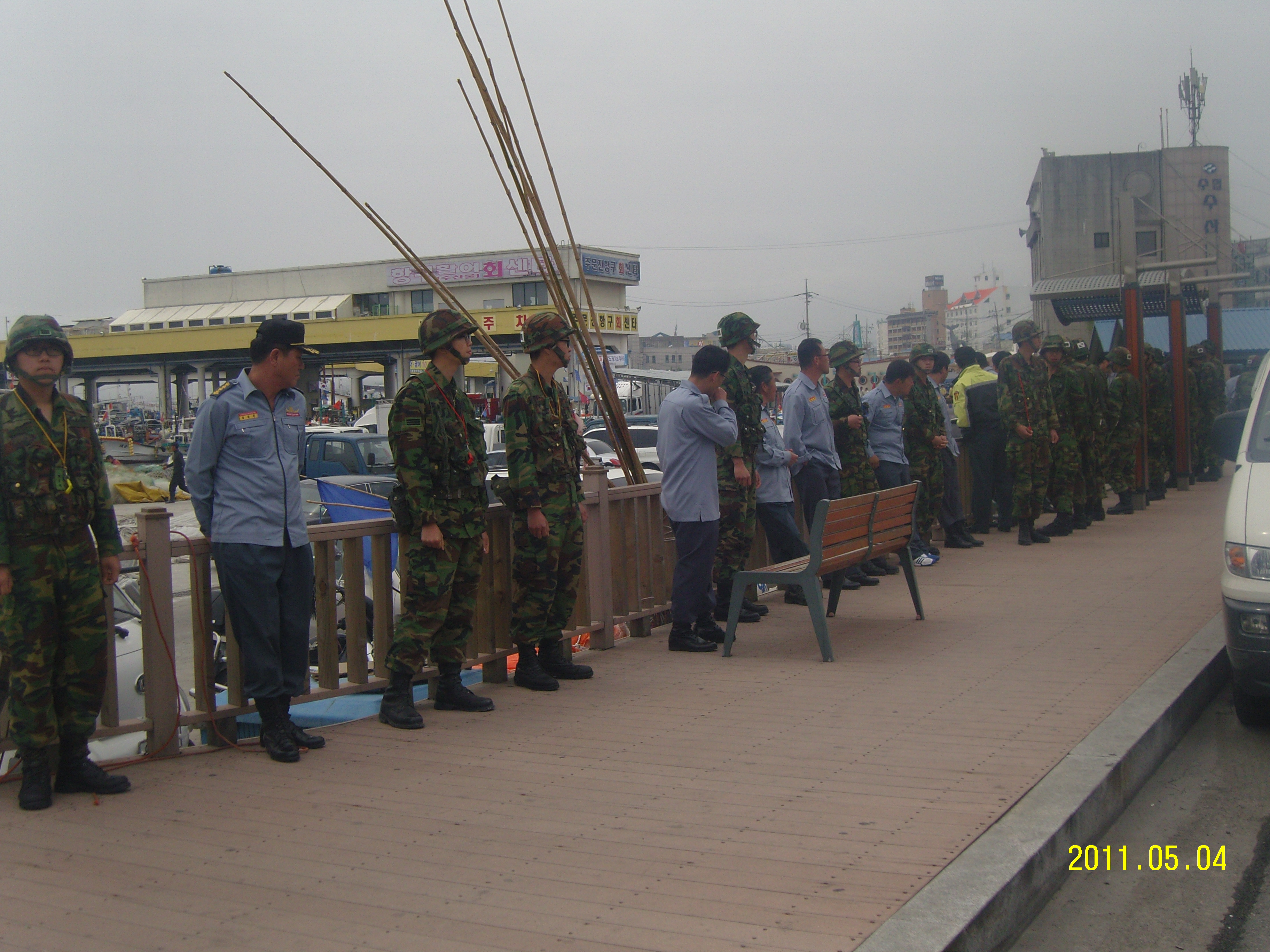 주문진 남,여 의용소방대는 동해안쓰나미사항을대비하여주문진항에서