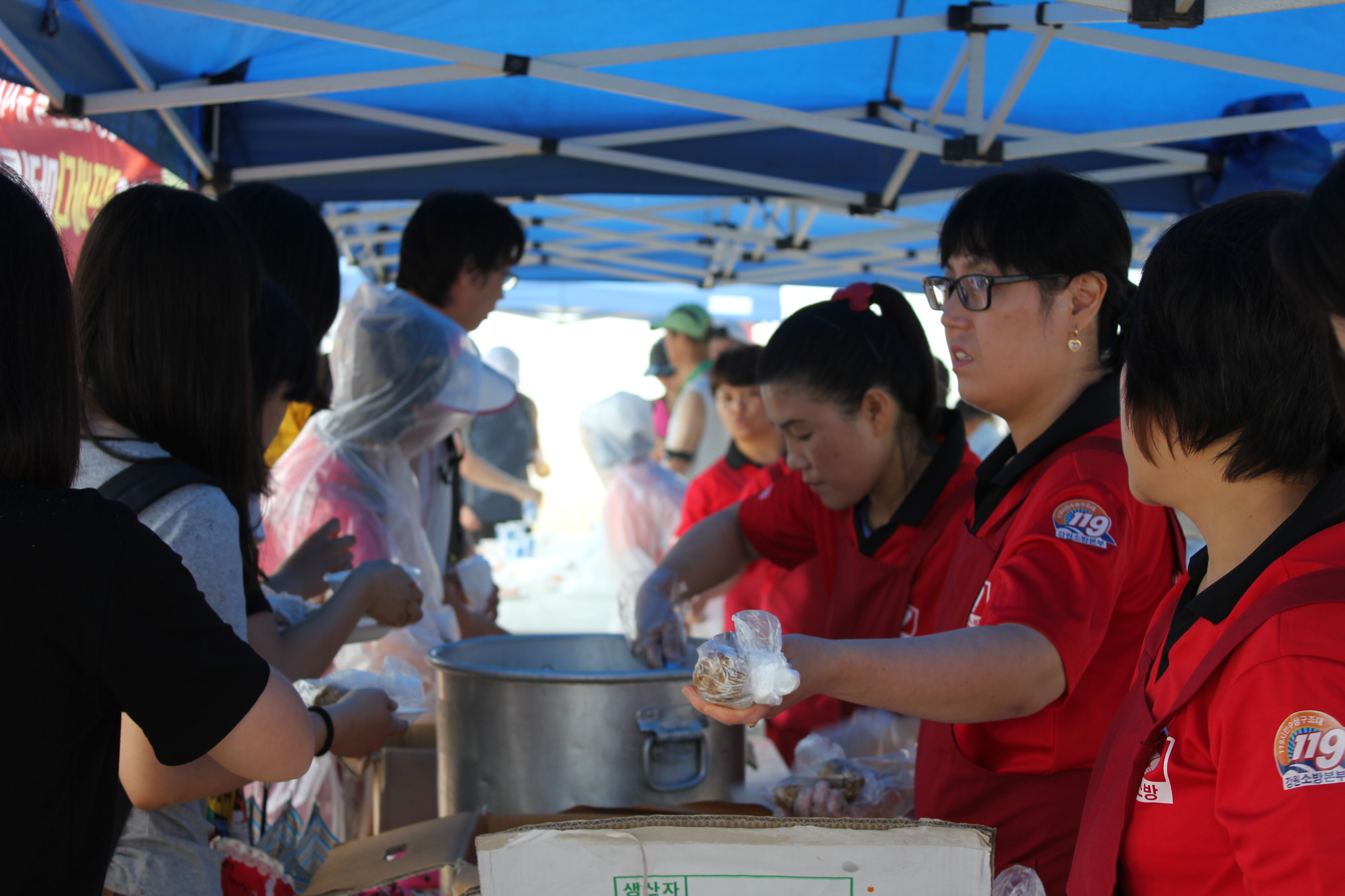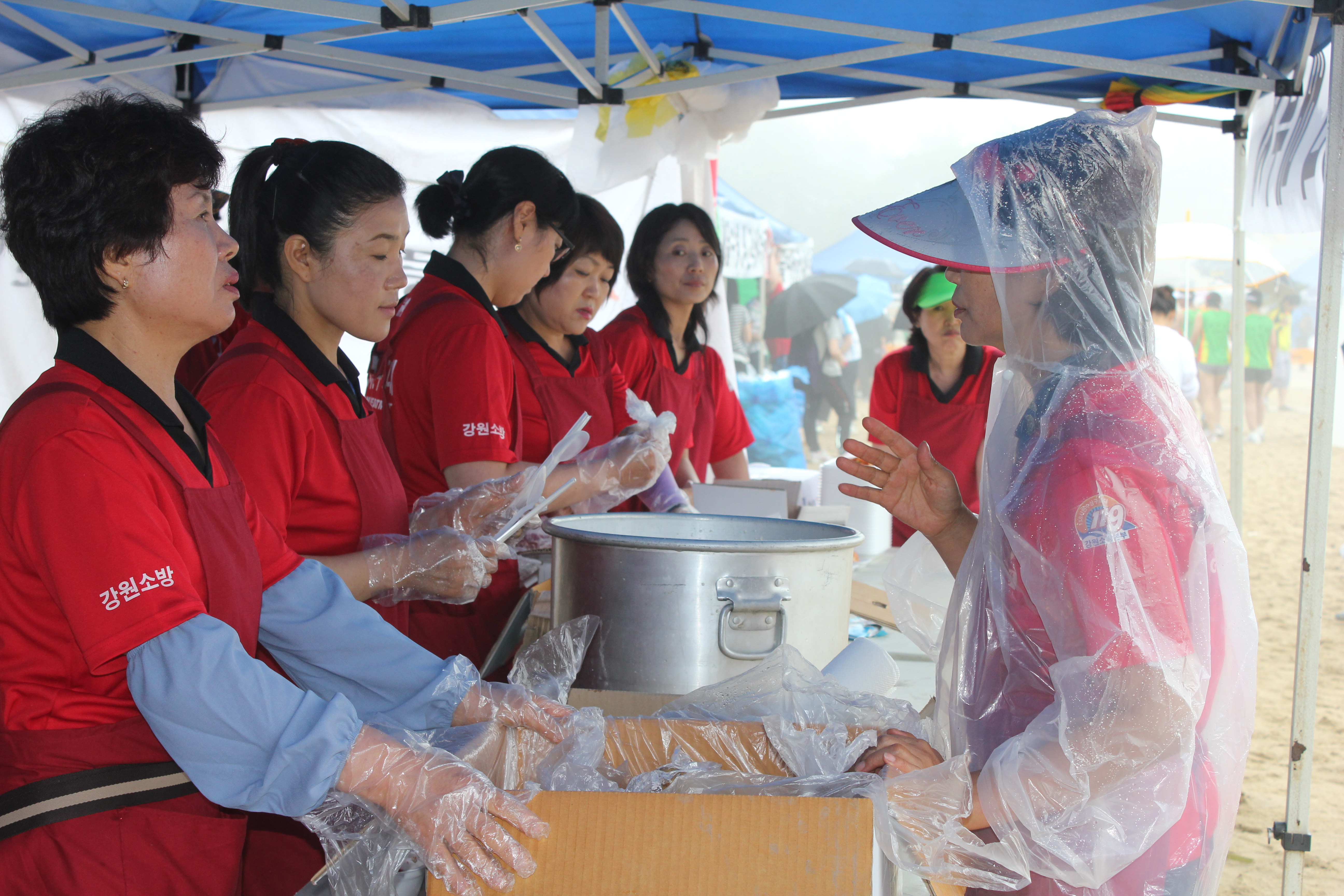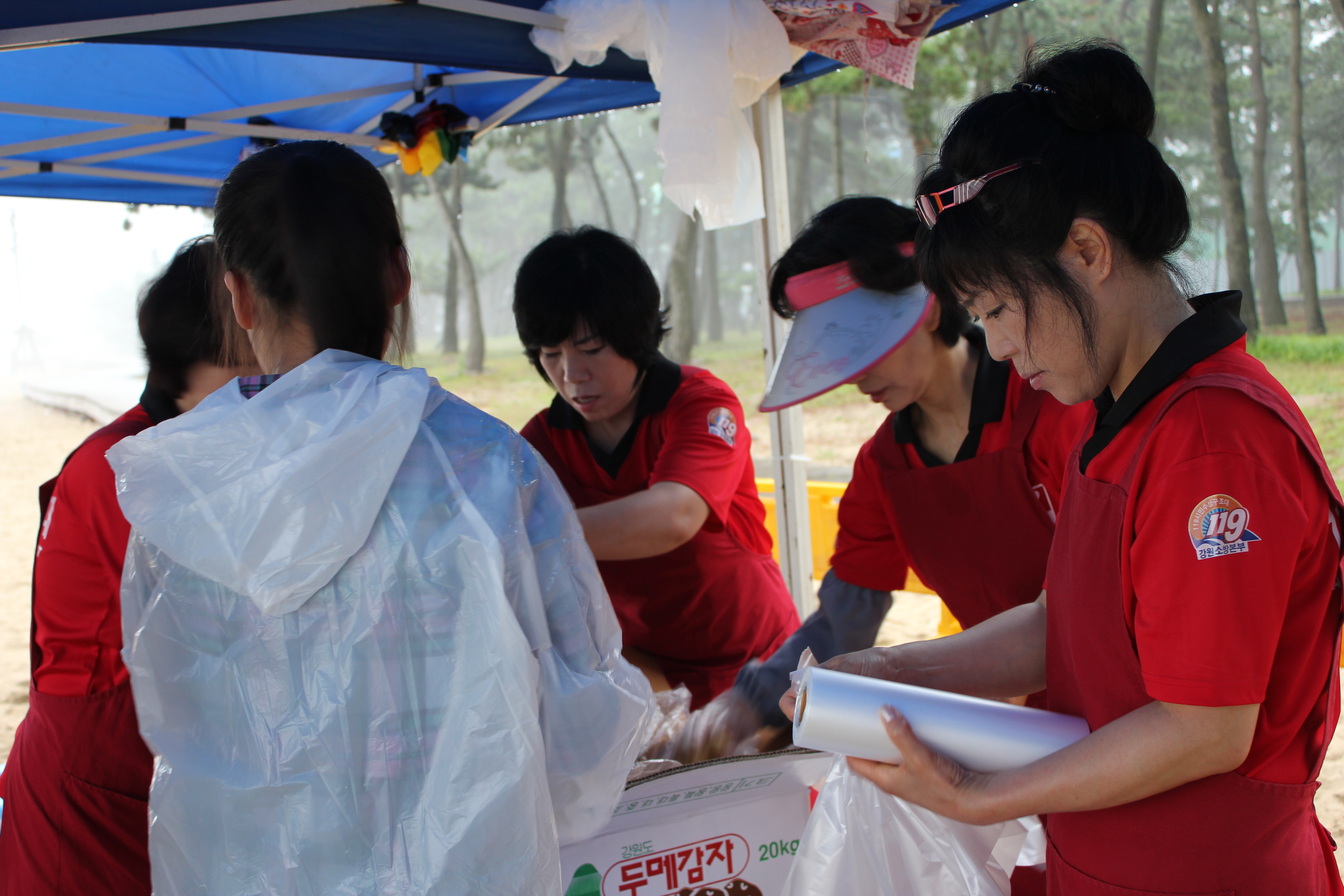 많은 비가 내리는가운데도 아침7시부터 아침도 굶은체 봉사하신 모습입니다.