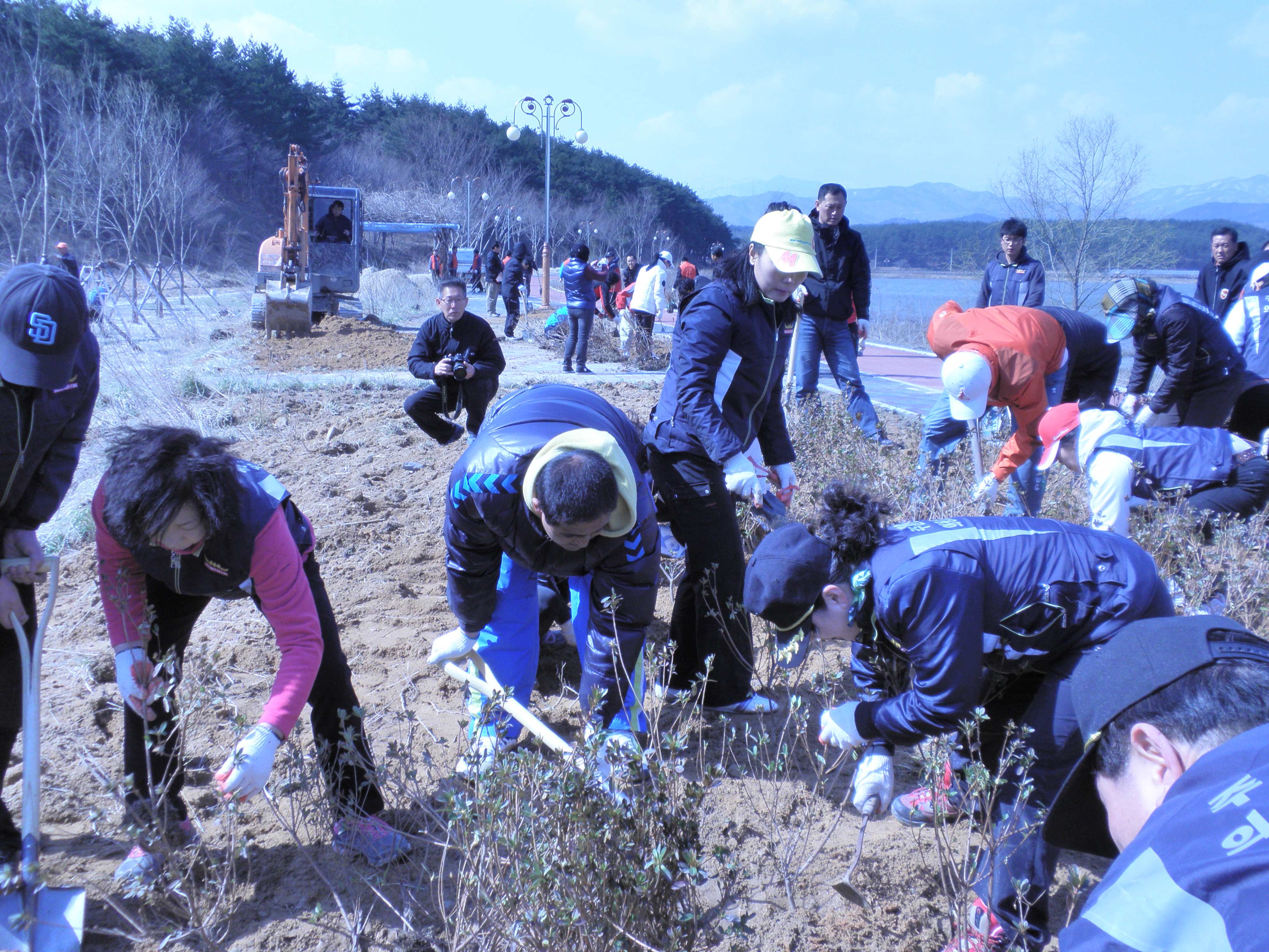 지역단체들과 힘을모아 나무를 심고 꽃동산을 만들었습니다