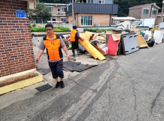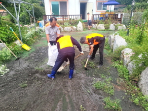 ㅇ 내용 : 산불진화차 및 살수차를 이용한 토사 정리 및 침수 가구 긴급 수해복구 지원