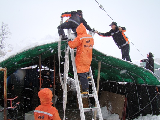 영동지방 기록적인 폭설로 인한 강릉소방서 제설작업 활동사진 입니다.