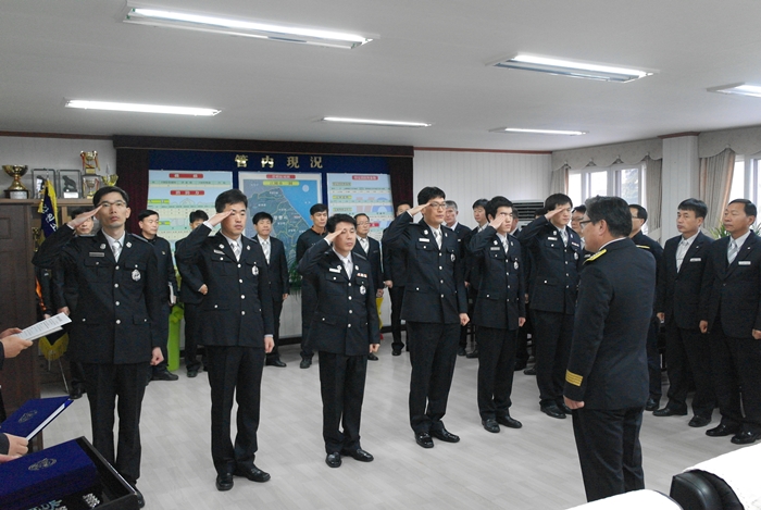 강릉소방서(서장 김남숙)는 12. 03(월) 08:40 서장실에서 승진자 6명에 대한 신고식을 실시하