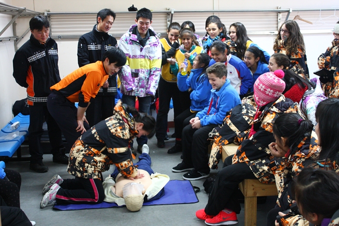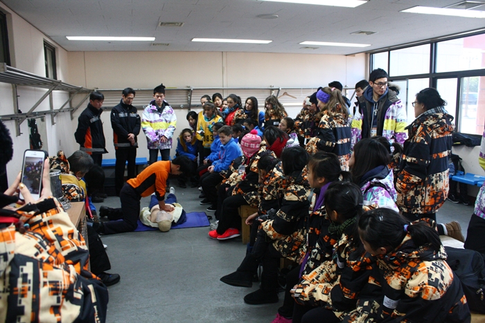 참가중인 외국청소년 및 국내 자원봉사자 130여명을 대상으로 심폐소생술 교육을 실시하였