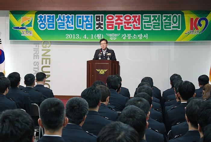 이번 교육은 자랑스런 소방인 시상, 청렴실천 및 음주운전 근절 결의문 낭독, 청렴교육, 무사고365일 실천 결의문 낭독, 성희롱'성매매 예방 특별 교육 등으로 실시되었습니다.