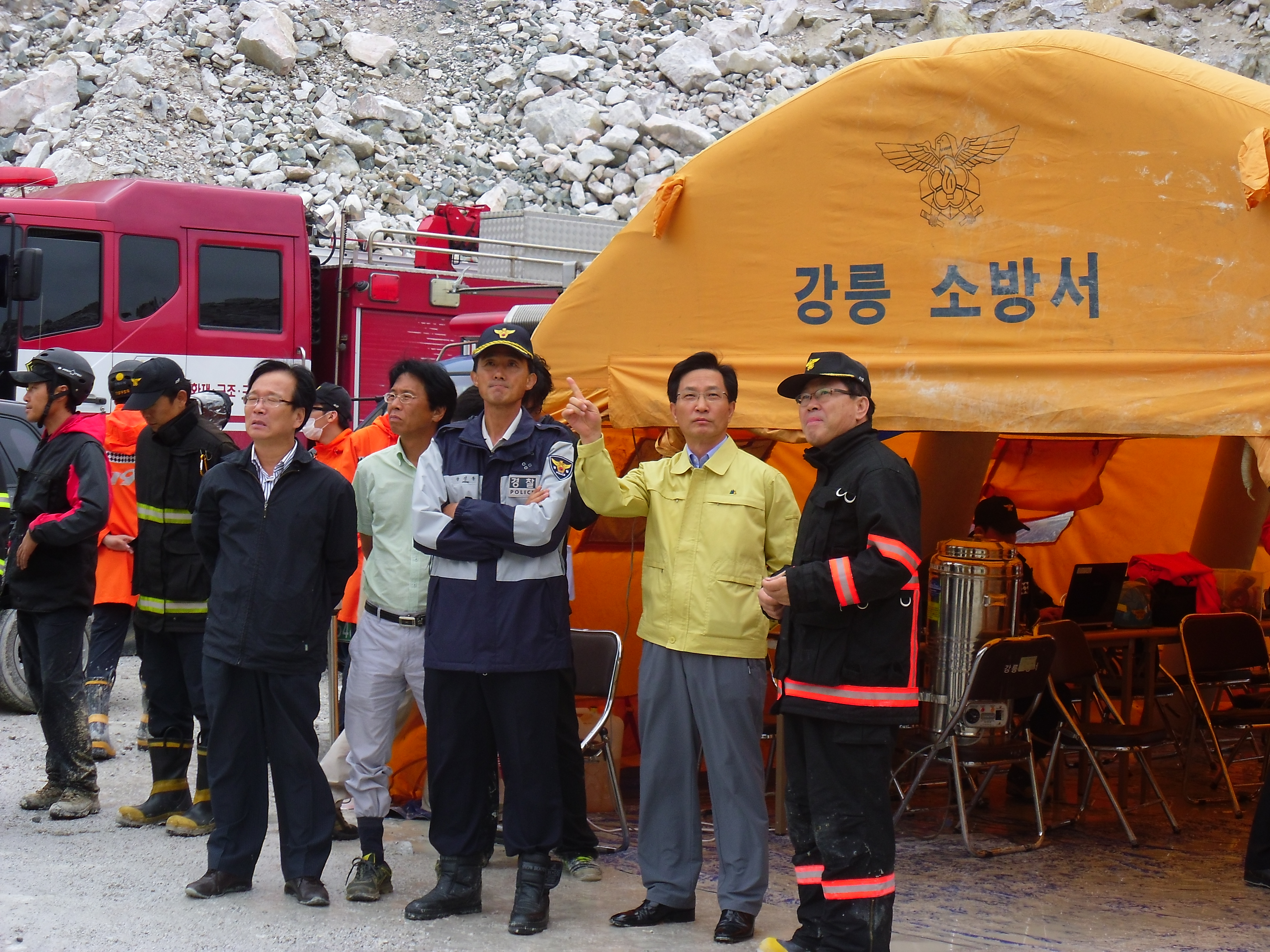 옥계 라파즈한라시멘트 채석장 붕락사고 현장
