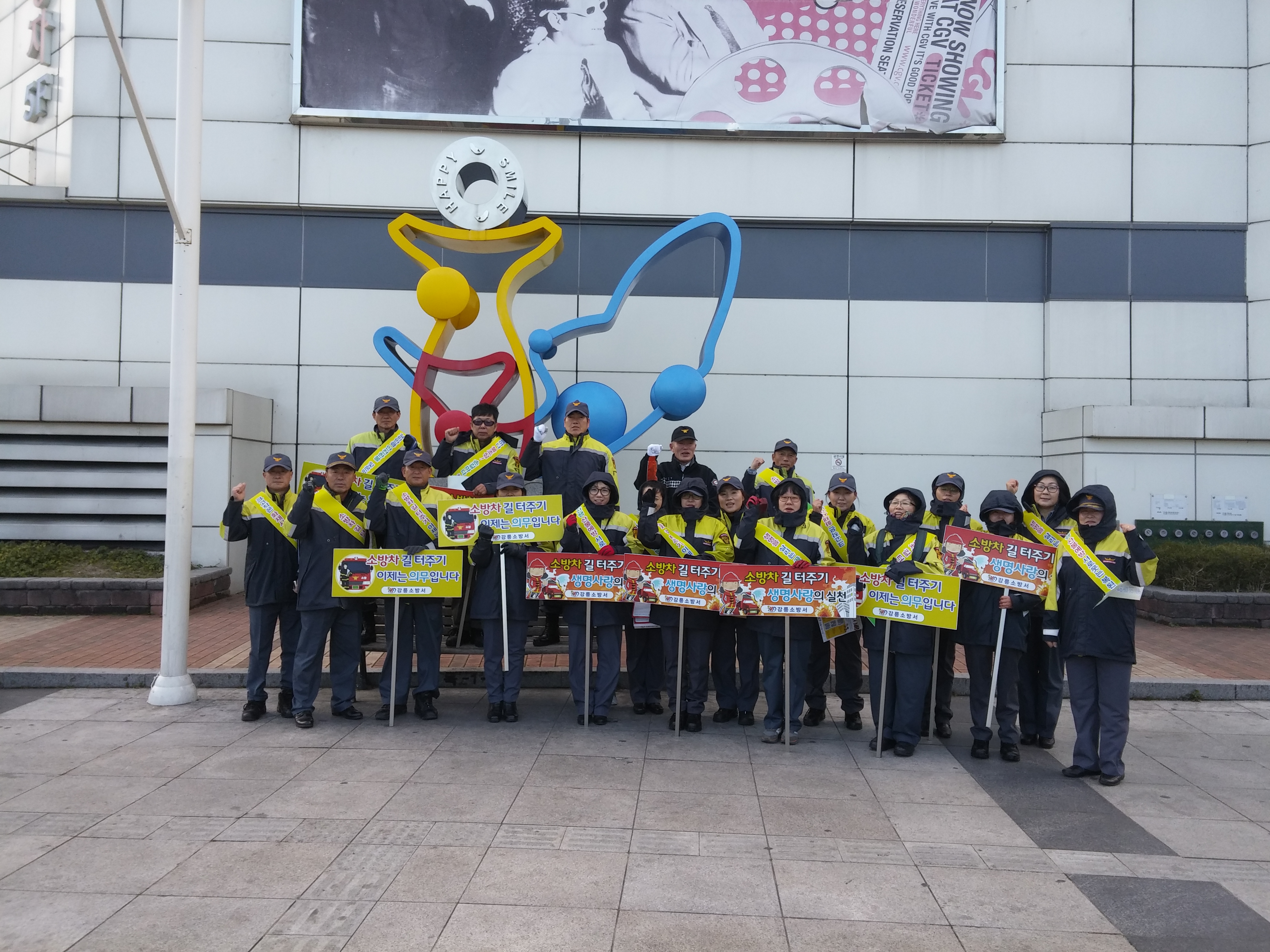 강릉소방서(서장 정은철)은 11월 불조심강조의 달을 맞아 11월27일 오후1시 소방공무원 및 의용소방대원들이 참여해 옥천동 오거리 일대에서 화재예방캠페인 및 소방차량 불조심 홍보 퍼레이드를 실시하였다.