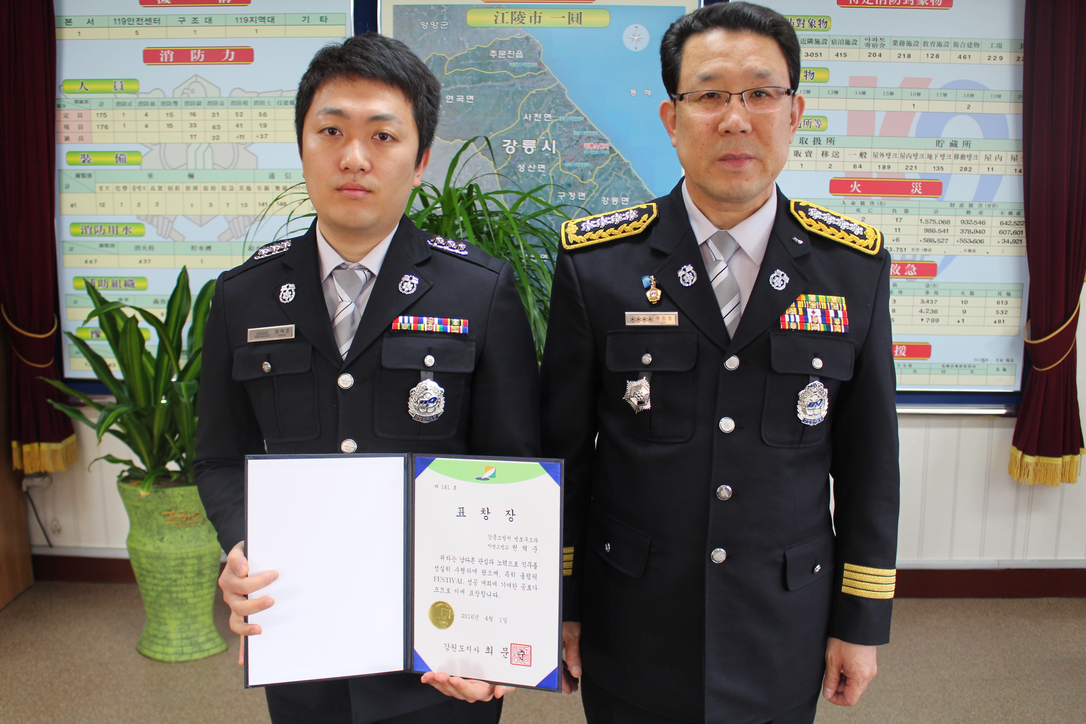 강릉소방서(서장 주항중)는 2016. 4. 1(금) 오전 9시 서장실에서