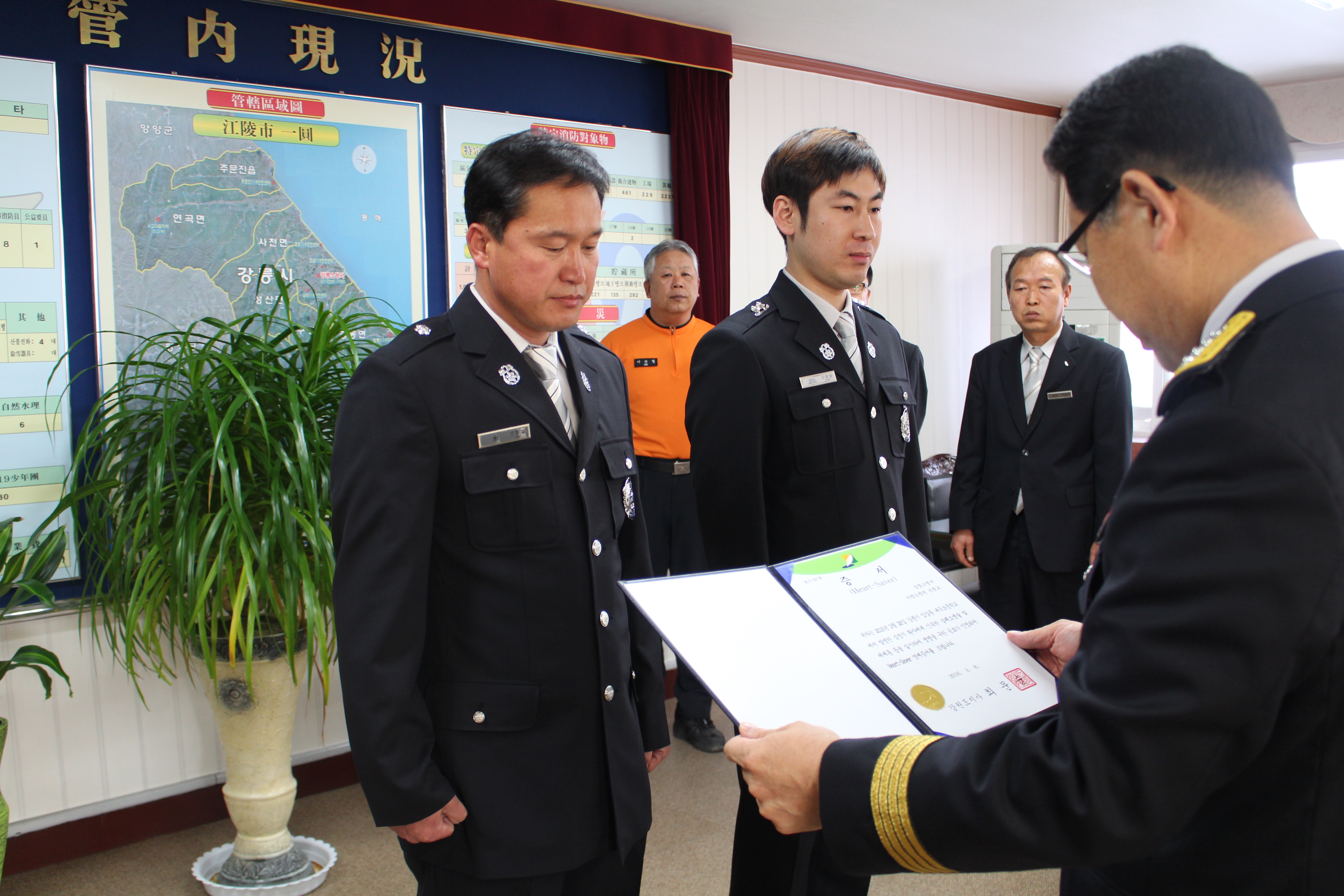 심정지 환자를 소생시킨 신중교 소방위와 신호승 소방사에게